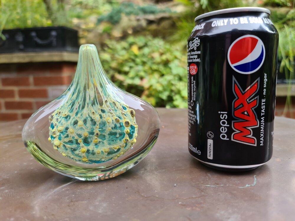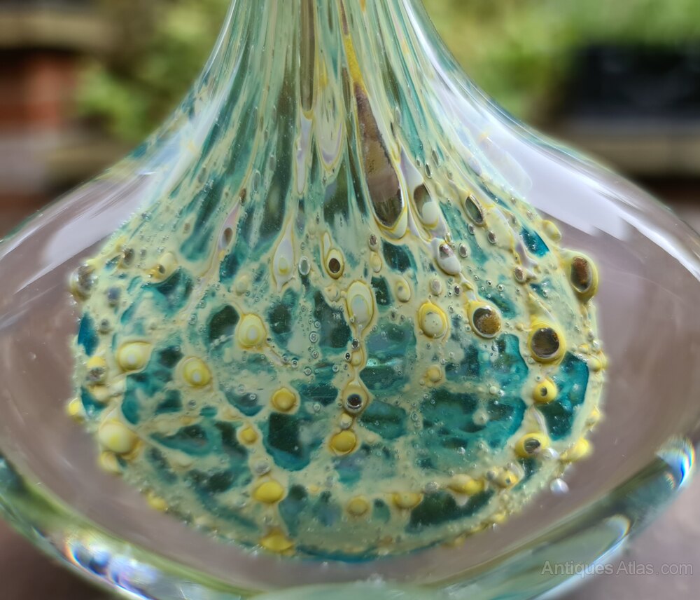 A ‘one-off’ piece and one for the collectors, replicating the earlier, much sought after ‘Crizzle Stone’ vases created by Timothy’s father Michael Harris in the 1970’s (he was the originator of both Mdina Glass and Isle of Wight Glass).