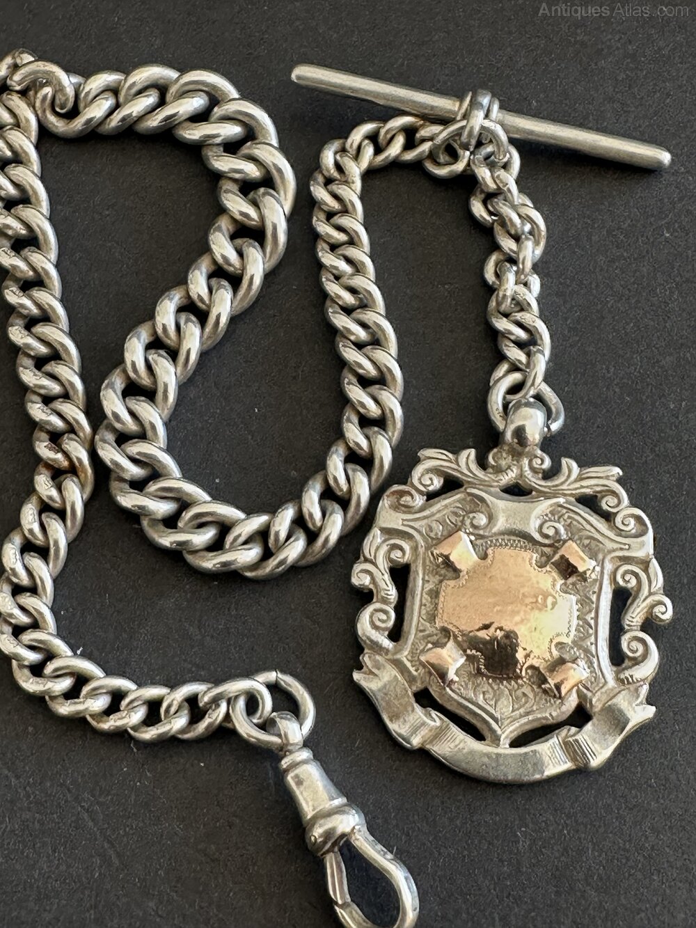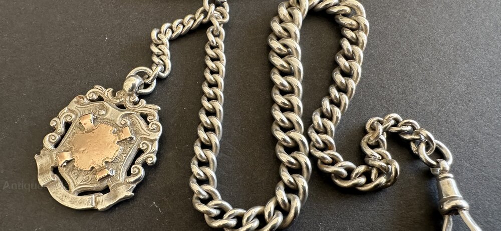 Silver Albert Pocket Watch chain & Fob c1904 58gms