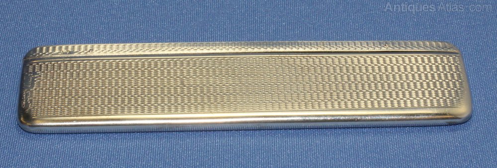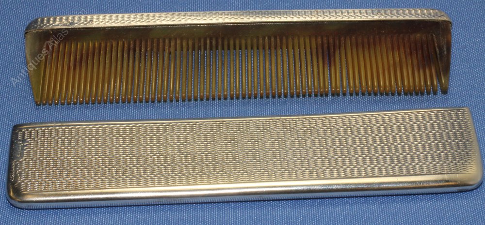 This is a Silver Gentleman’s Pocket Comb with engine turned comb back and cover, holding a tortoiseshell comb.