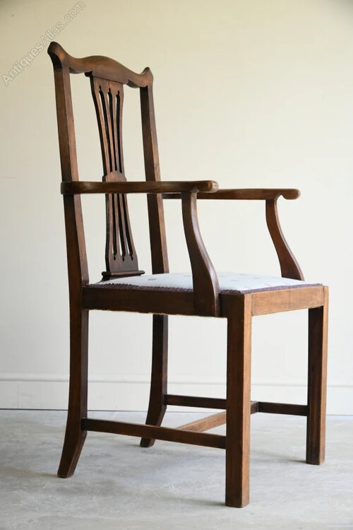 Single Chippendale Style Carver Chair. Early - Mid 20th Century single Chippendale style carver chair, stained beech frame with upholstered seat