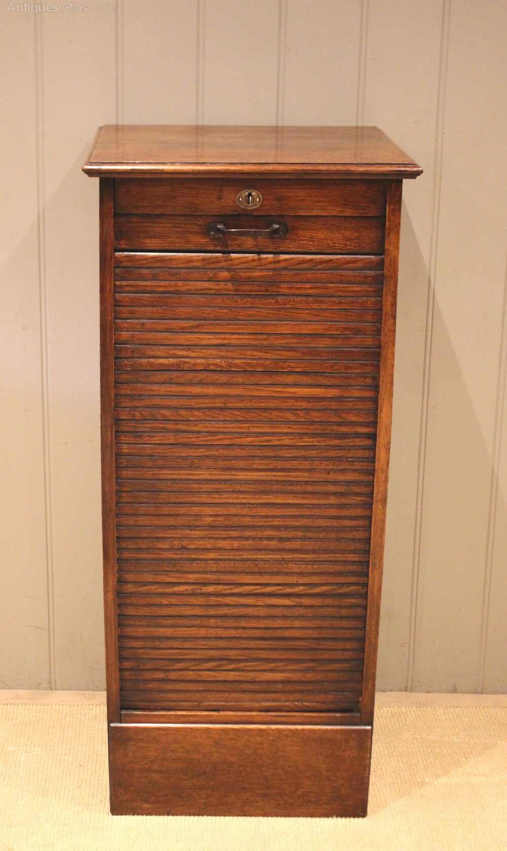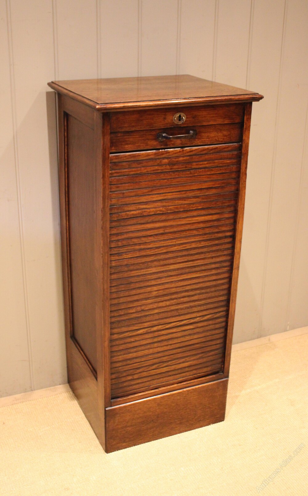 Single Oak Tambour Front Filing Cabinet