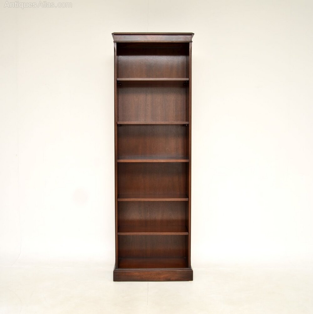 A very well made and very smart antique slim mahogany open bookcase in the Georgian style. This was made in England, it dates from around the 1950’s.