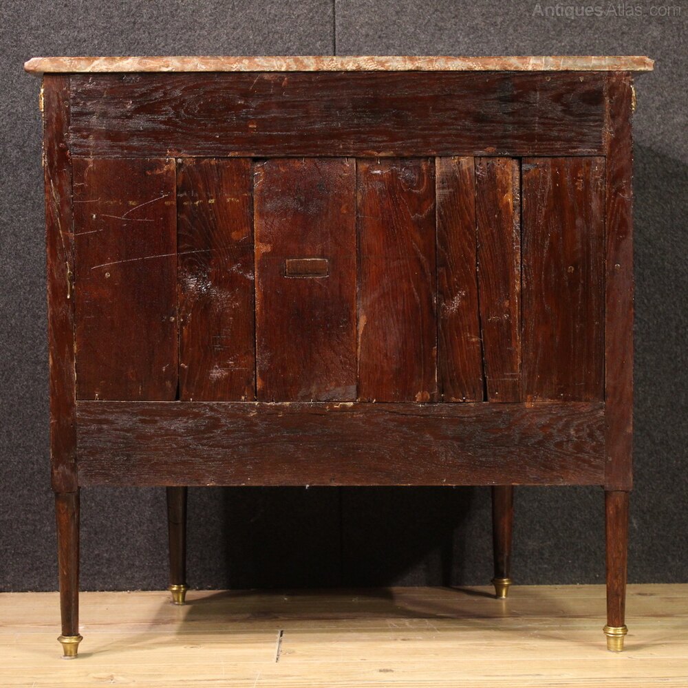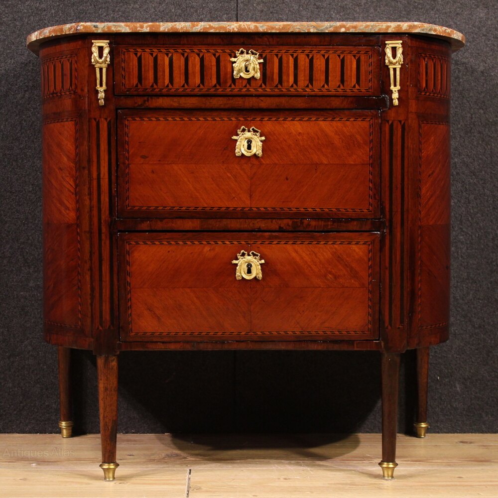A very elegant commode complete with original, finely gilded and chiseled bronzes. Supported by four solid tapered wooden legs with gilded brass feet, this three-drawer chest of drawers offers ample storage space and is ideal for a bedroom or living room. For antique dealers and interior decorators, this small dresser has recently undergone a conservative restoration and polishing. It comes with a key for the three working locks. In excellent condition, already restored. As each of our products will be accompanied by a certificate of authenticity and warranty and photographic documentation. Every item will be packed in a custom-made wooden box. Free shipping in Europe and UK (import and custom duties NOT included). Worldwide shipping at affordable prices, ask us a shipping quote. BUY IN INSTALLMENTS INTEREST FREE.