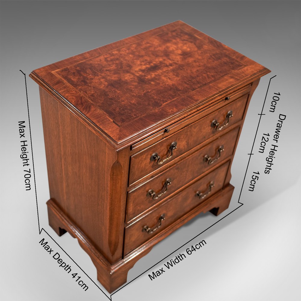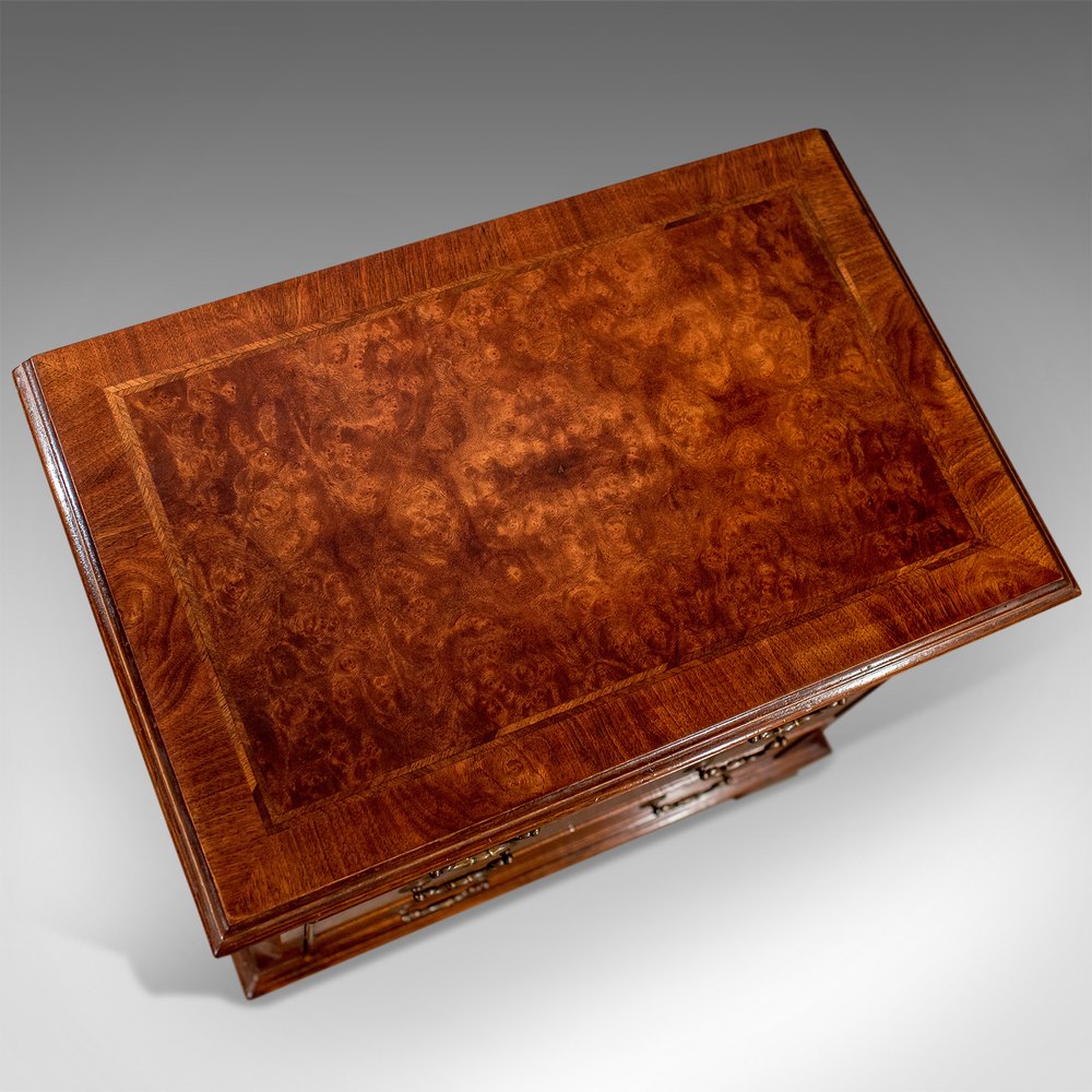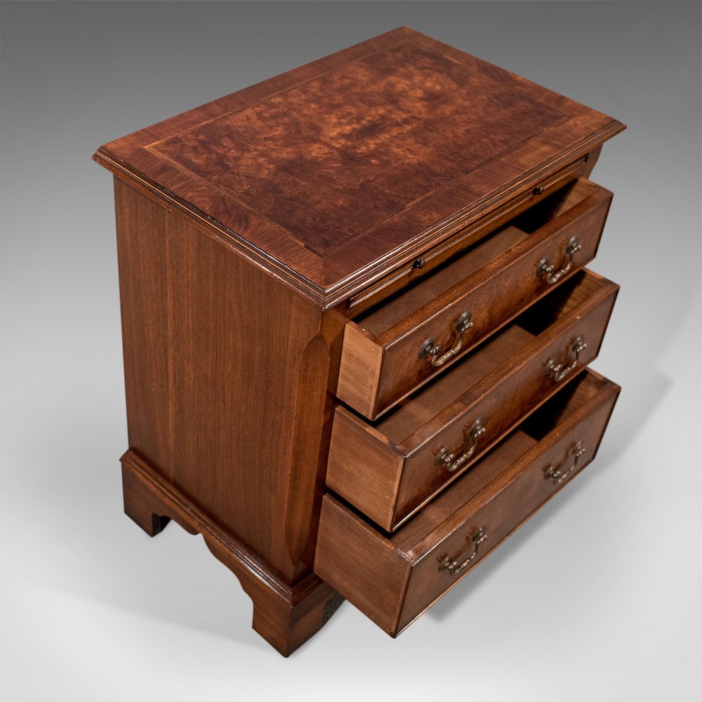 Compact Mahogany & Burr Walnut Chest Drawers - With Brushing Slide - 20th Century