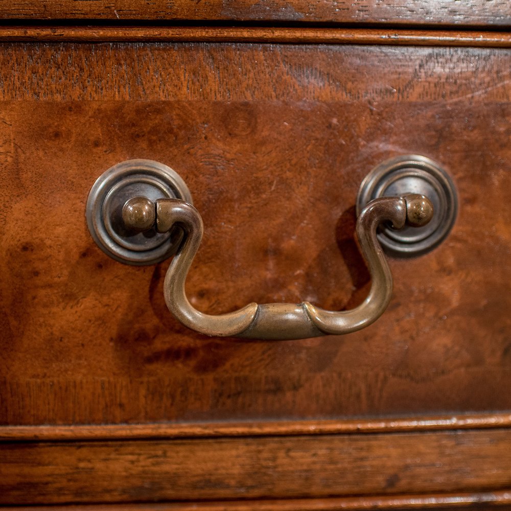 Attractive mahogany and burr walnut veneers showing quality grain and fine colour