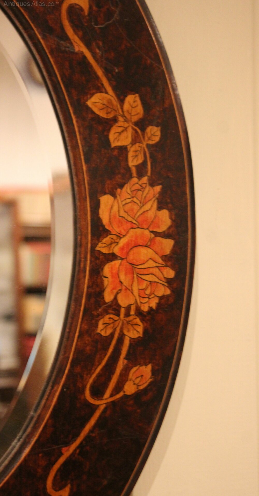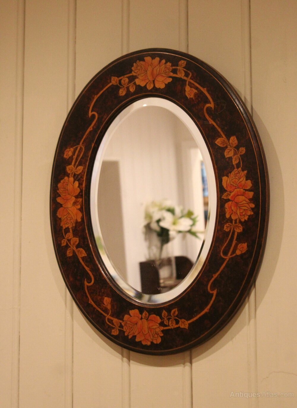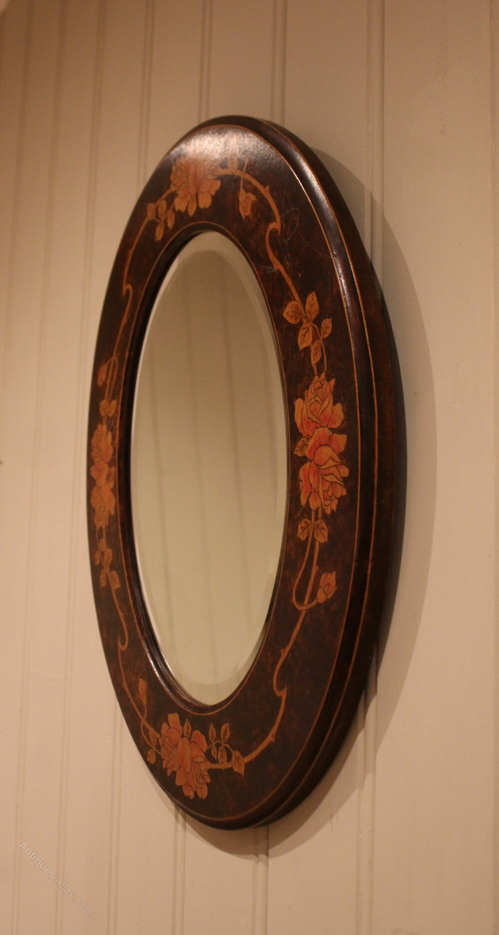 Edwardian Mahogany & Inlaid Oval Hall Mirror