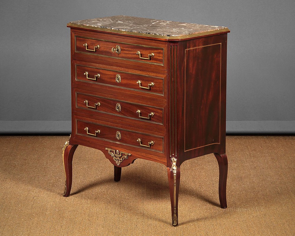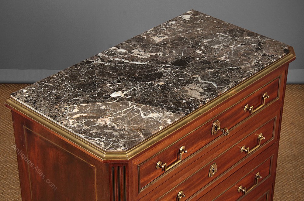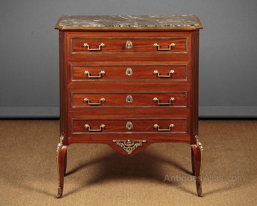 Small Brass Mounted Marble Top Chest of Drawers.