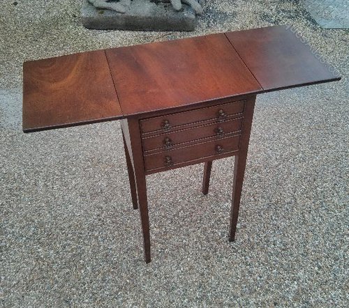 This little attractive occasional table has many uses. It can be used in a reception room or indeed could make an attractive bedside table. The fact it has the drop leaves at the side giving it even greater flexibility. In a used but tidy condition it can go into service right away. The faux drawers open as can be seen in the pictures revealing a handy little cupboard. Could be great in a hall for keys and gloves of course.