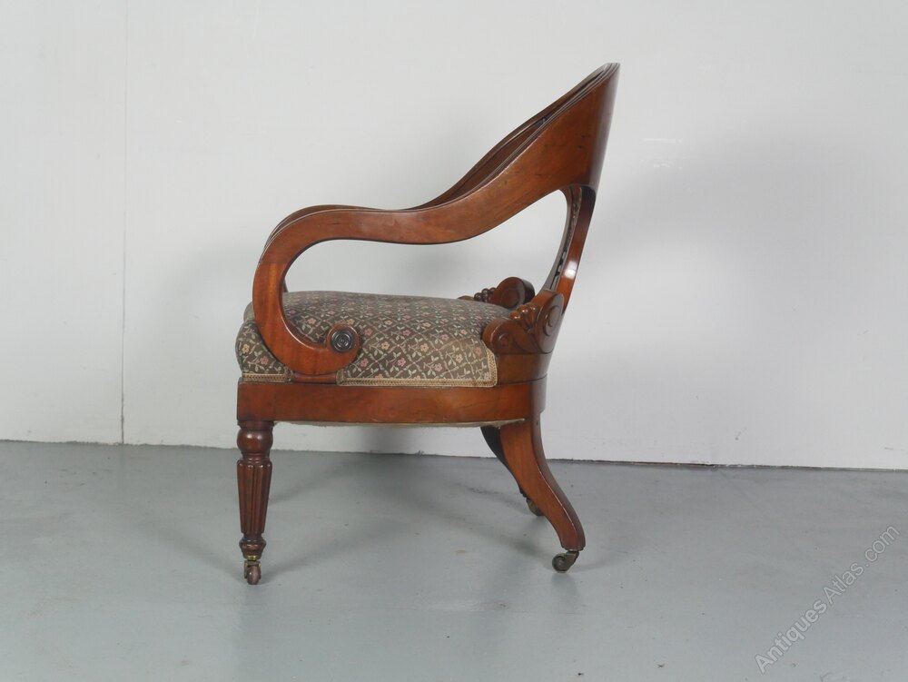Antique William IV Leather and Walnut Armchair