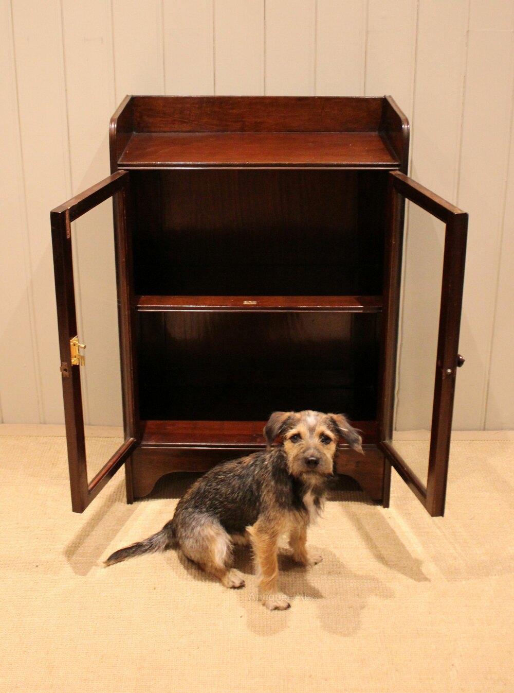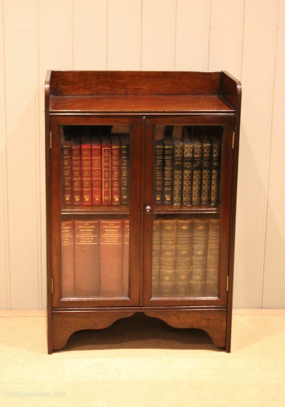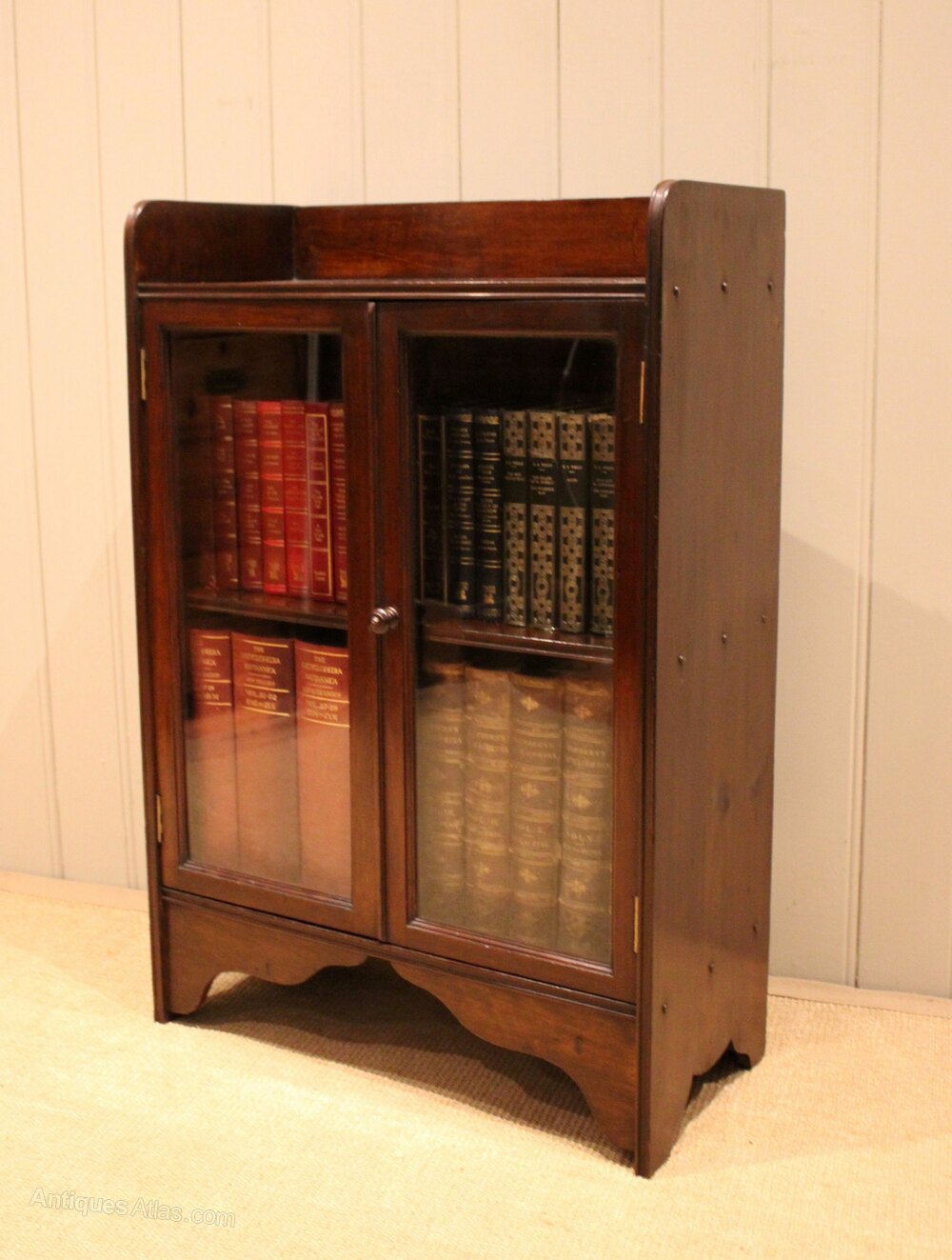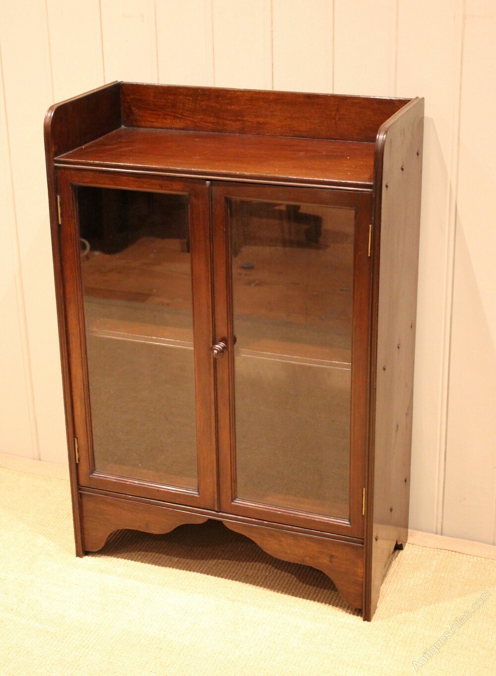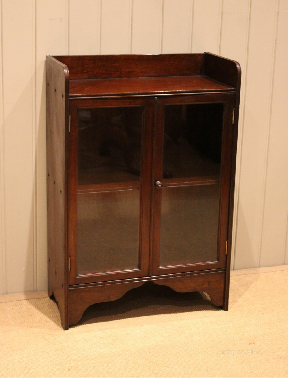Small mahogany glazed bookcase having a fixed internal shelf with an upper tier , raised on bracket feet. each shelf measures 24cm deep x 57 cm wide and 30 cm high