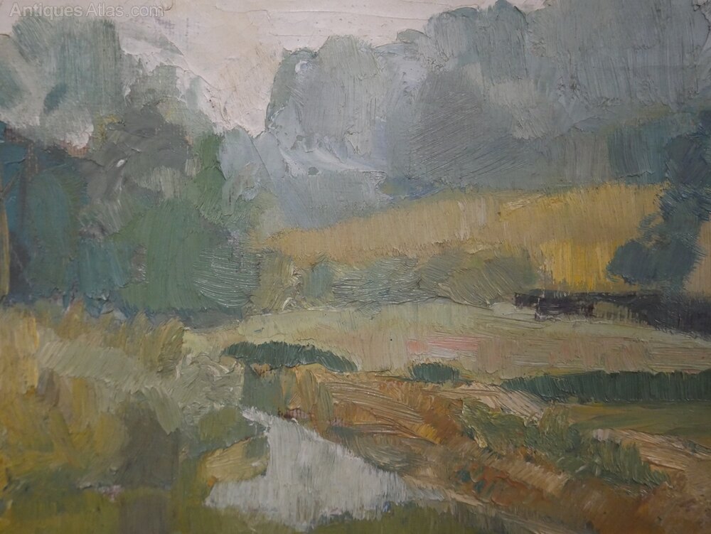 Antique English Oil Painting Landscape by MC Hider
