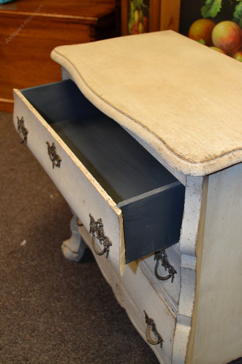Painted Carved Oak French Chest Of Drawers