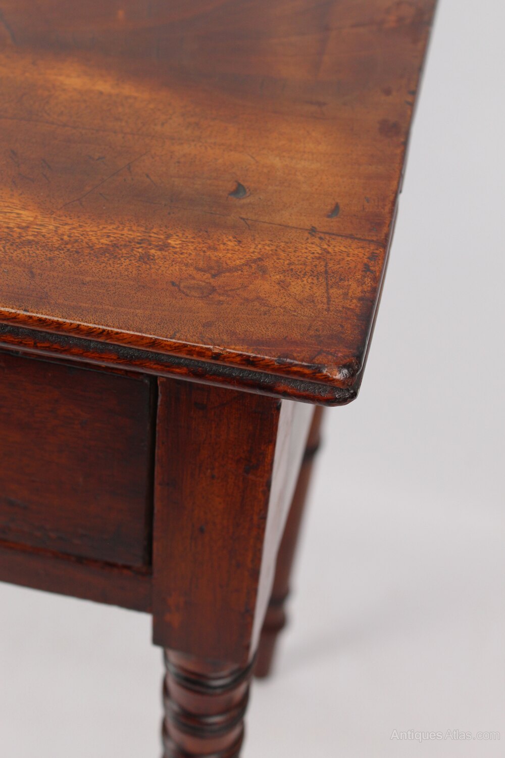 Good original condition – solid and sturdy. Nice patina to the wood. Marks, scuffs and wear commensurate with age. Some slight splitting to the top which has been filled with wax at some point.