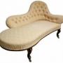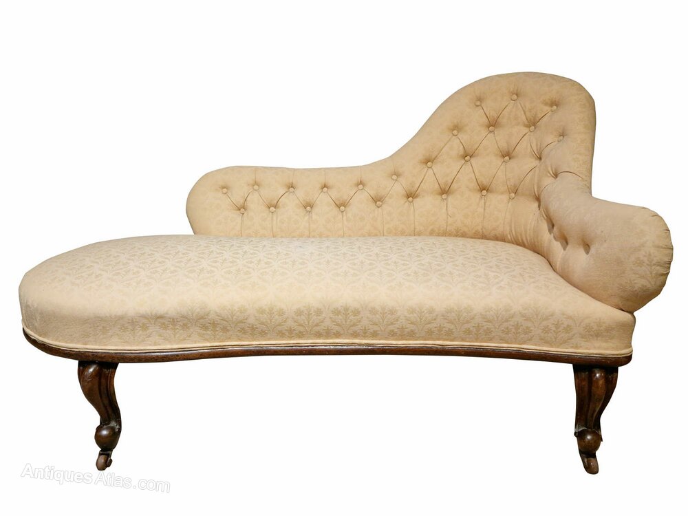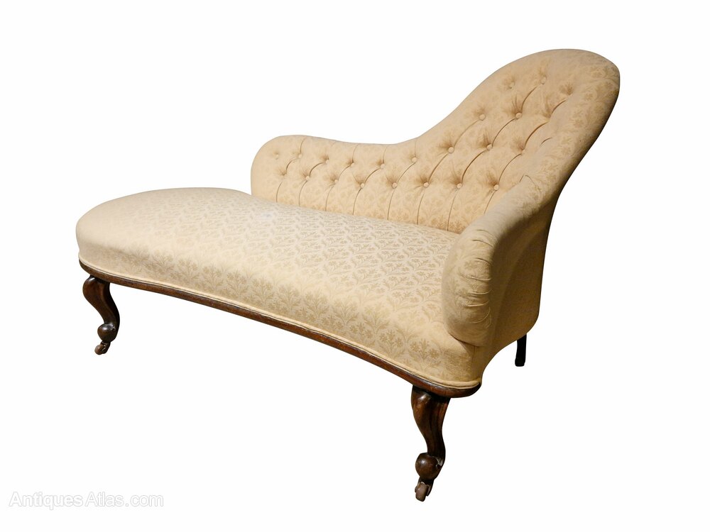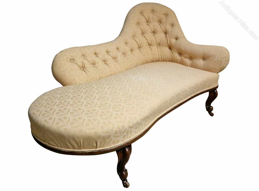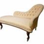 A small buttoned backed Victorian chaise longue on cabriole legs
