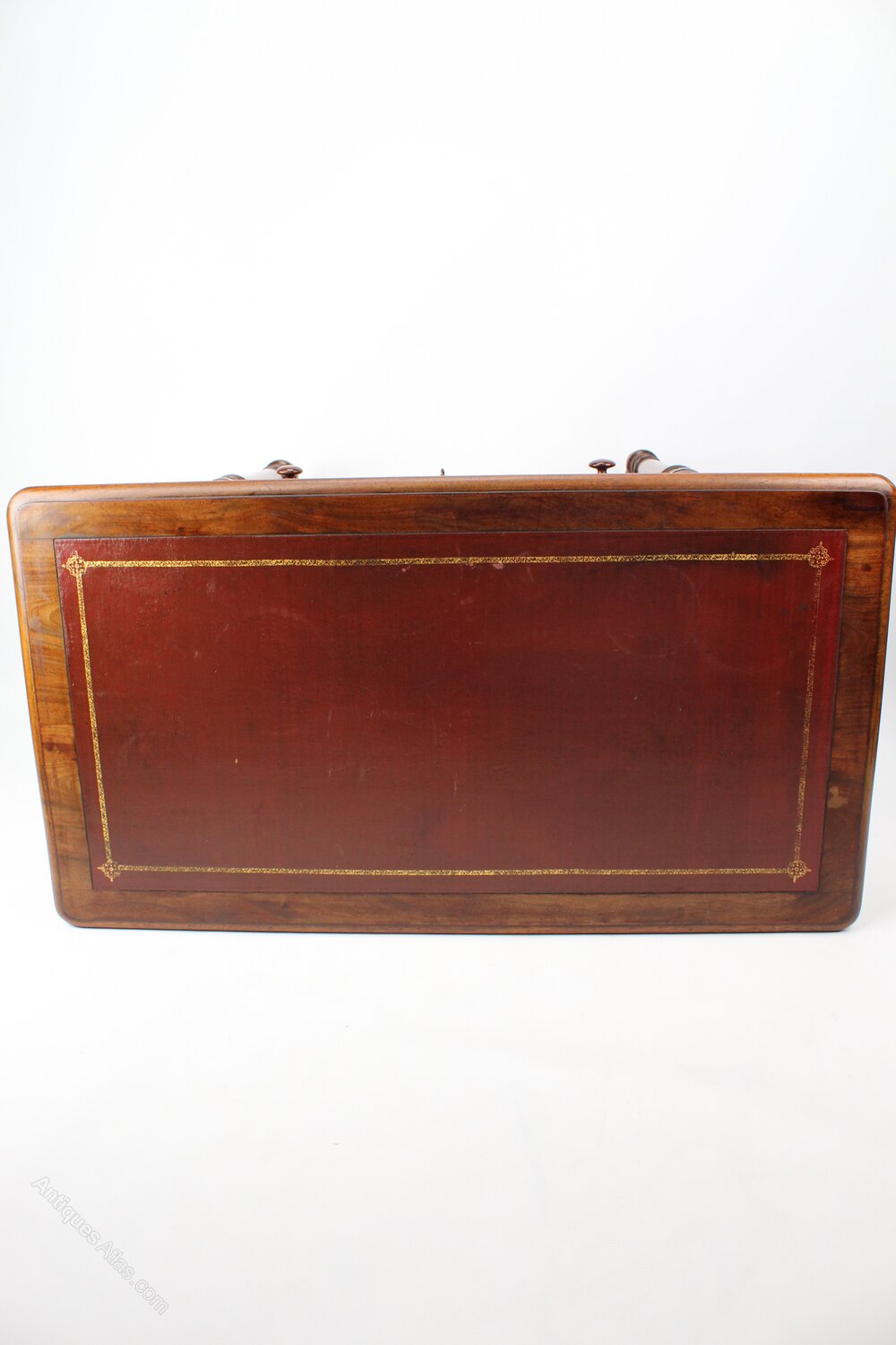 Antique Victorian Walnut Leather Top Pedestal Desk
