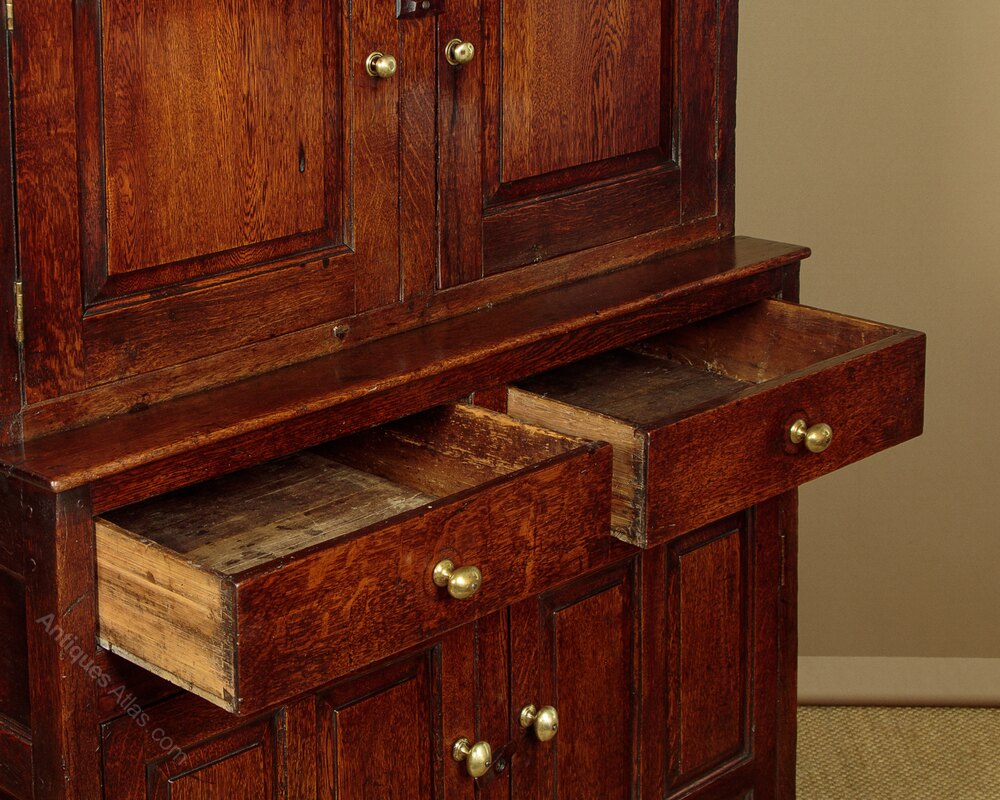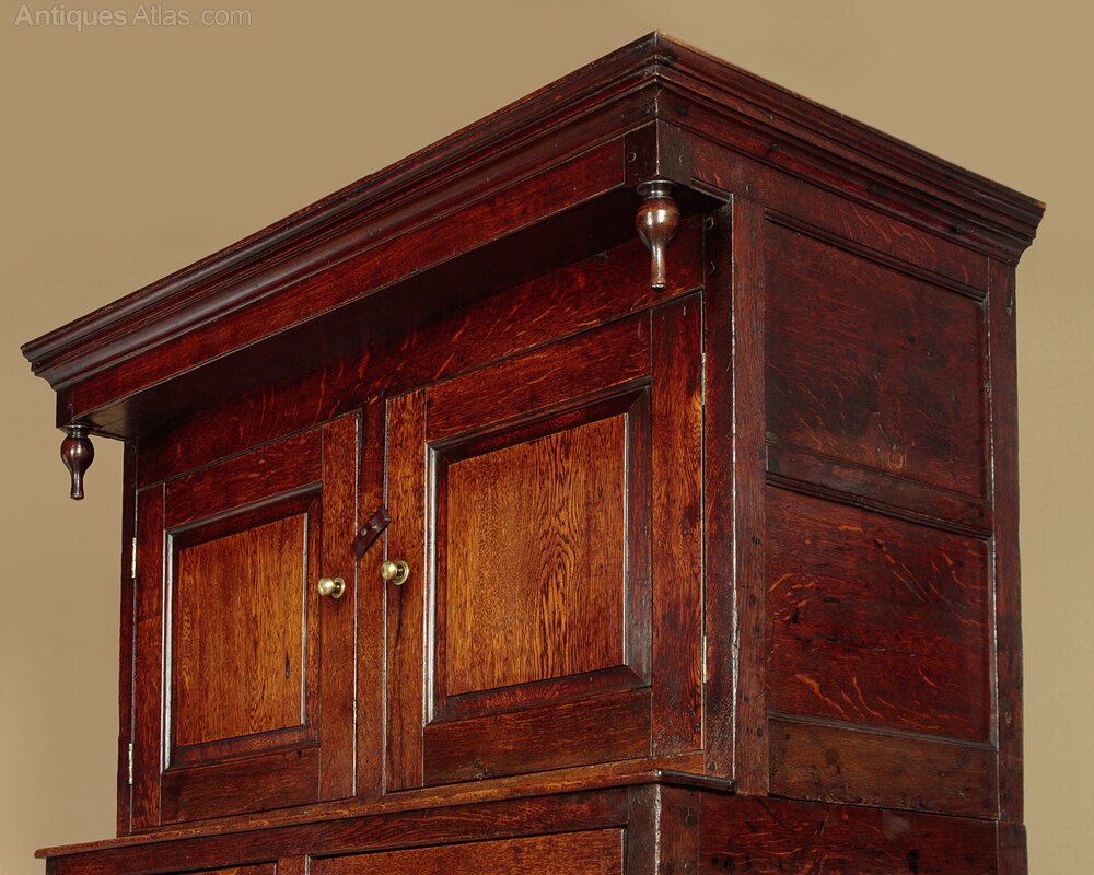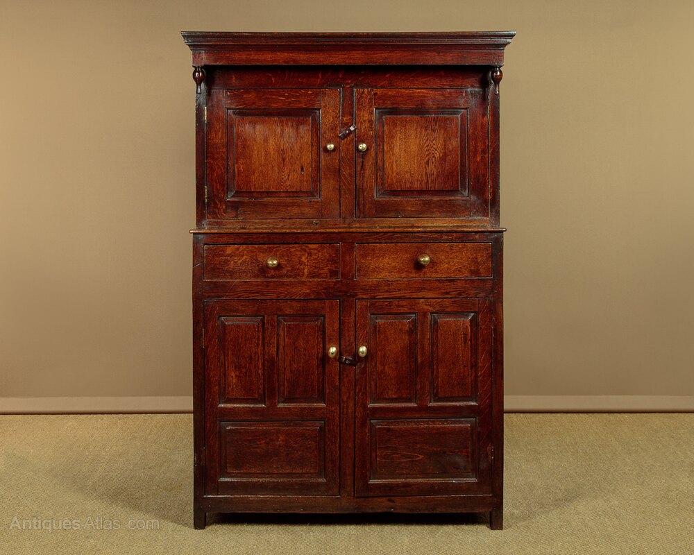 Small Welsh Oak Cwpwrdd Deuddarn c.1750