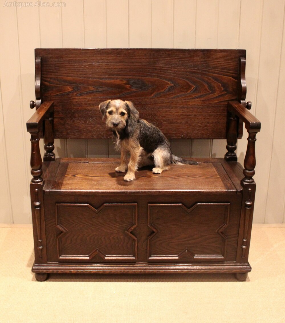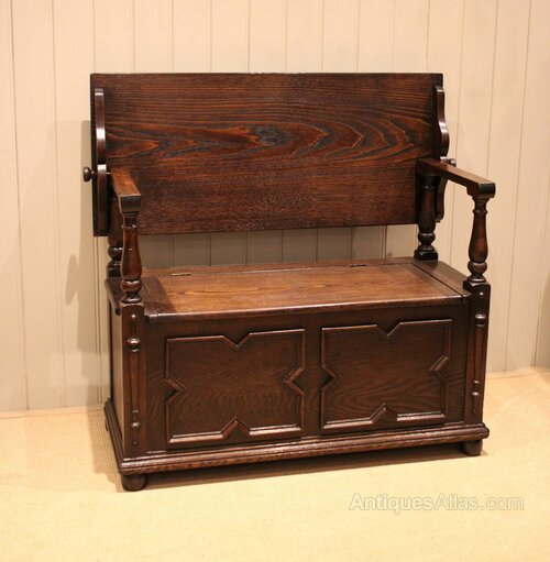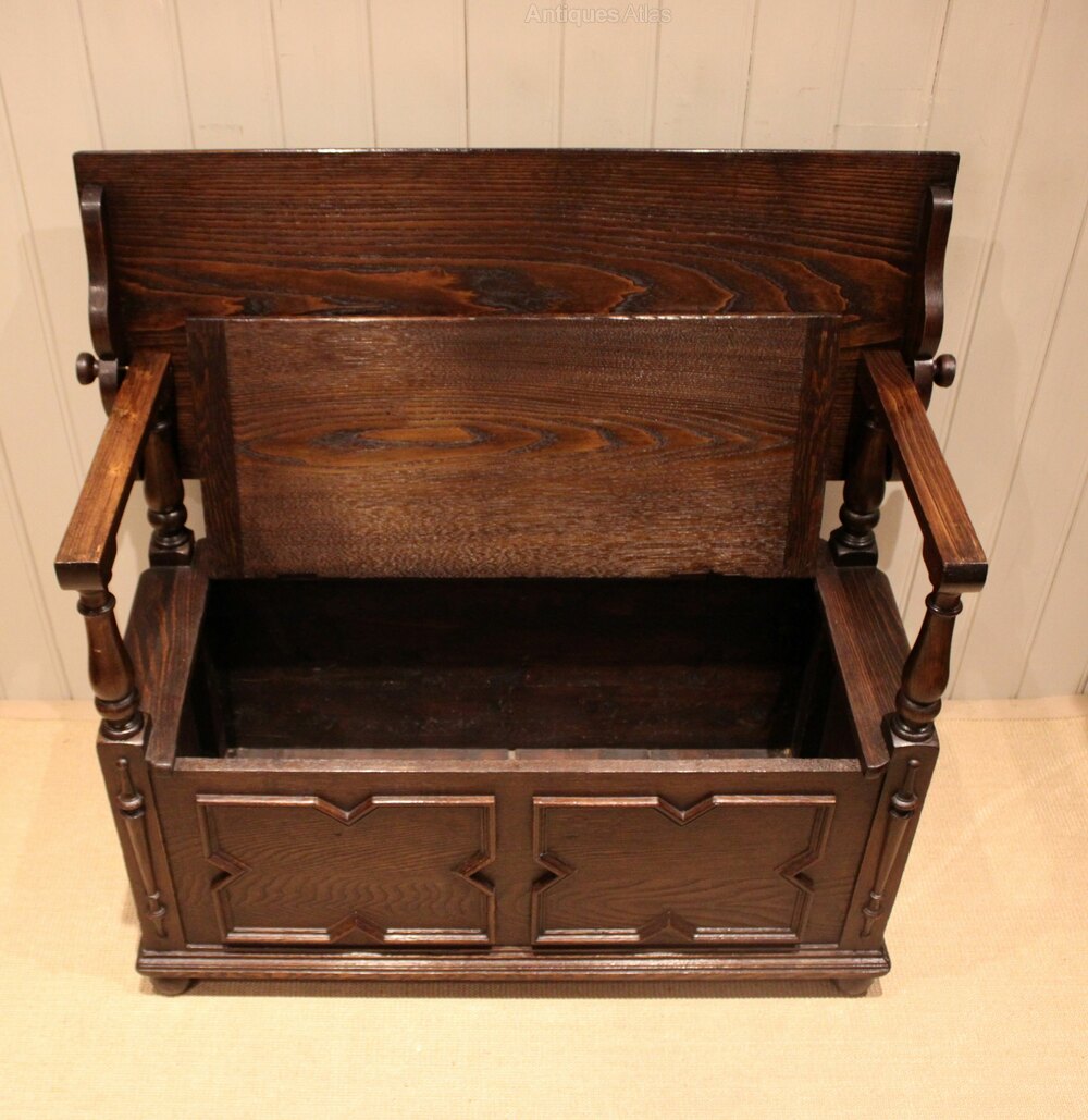 Circa 1860 Monks Oak Settle Bench Internal Storage