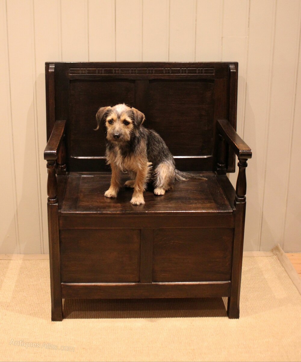 Fine Carved Oak Box Seat Settle Circa 1900