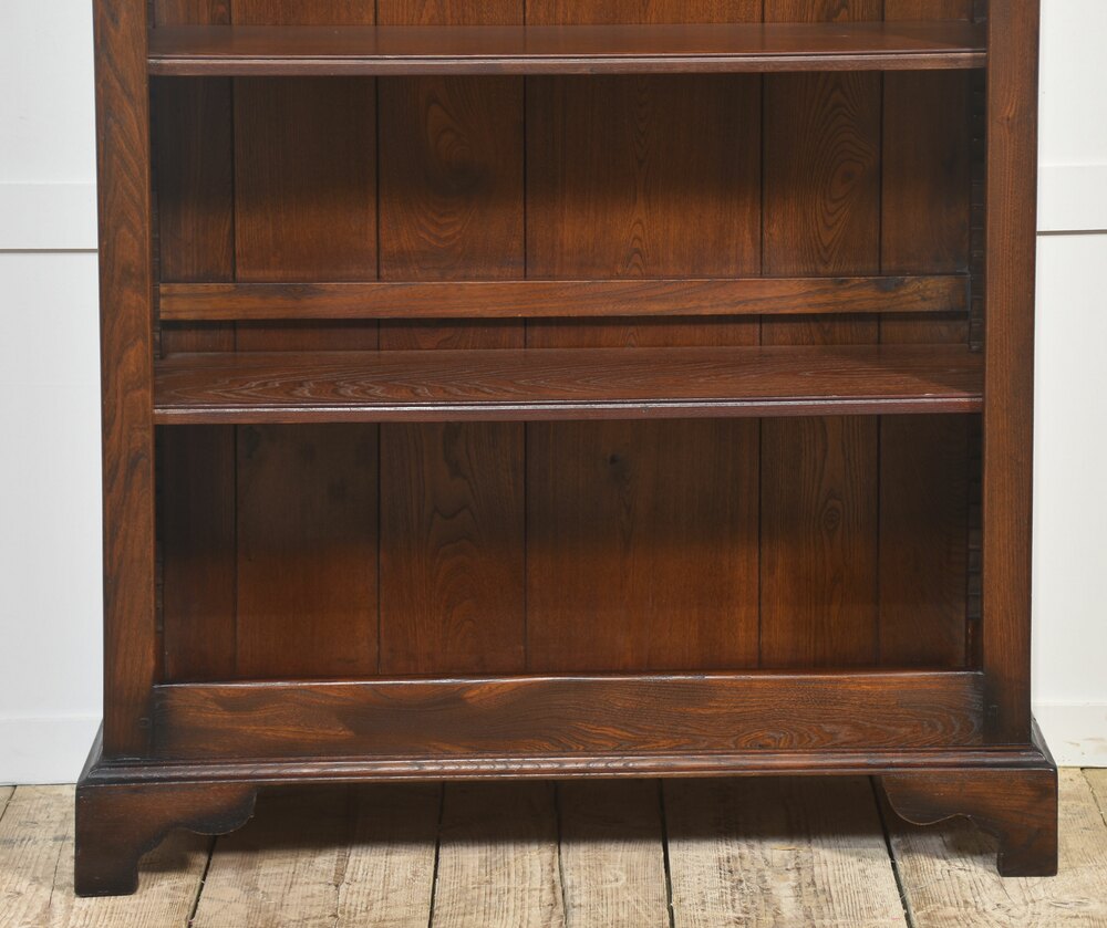 The bookcase rests on shaped bracket feet, giving it a touch of traditional elegance while remaining sturdy and functional. Its timeless style makes it a versatile addition to both period and modern interiors.