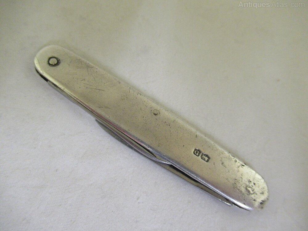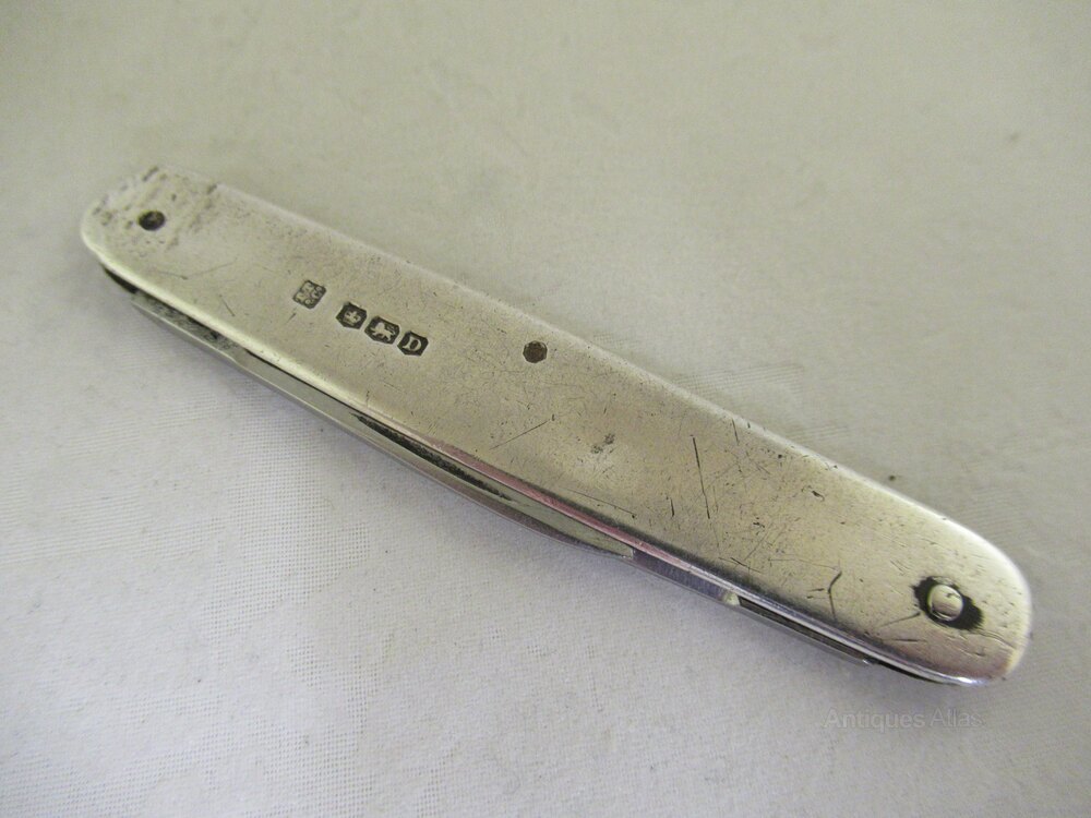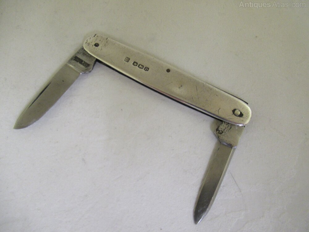 Solid Silver-Battered 2 Blade Pen Knife-S. 1946