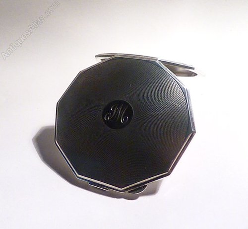 So Art Deco - a beautiful octagonal compact with an ornate engine turned lid & base.