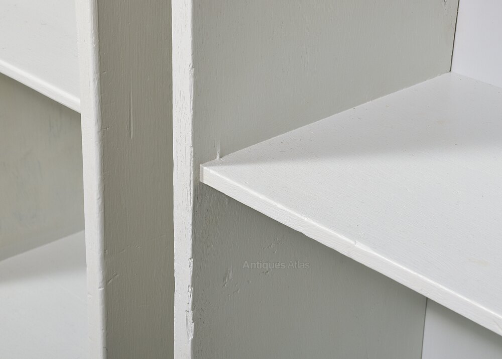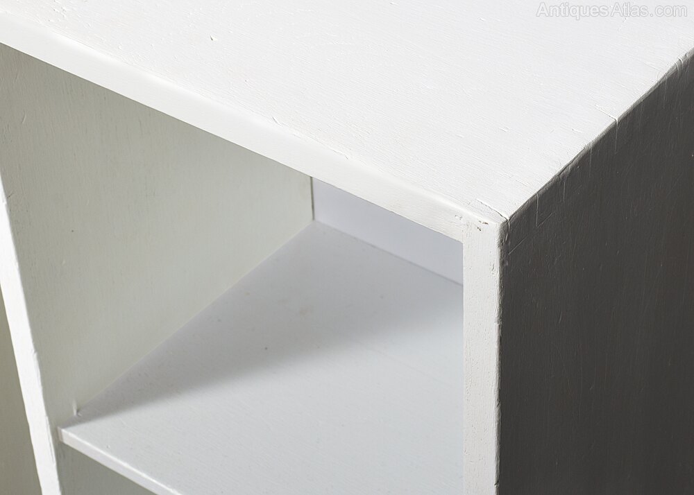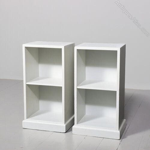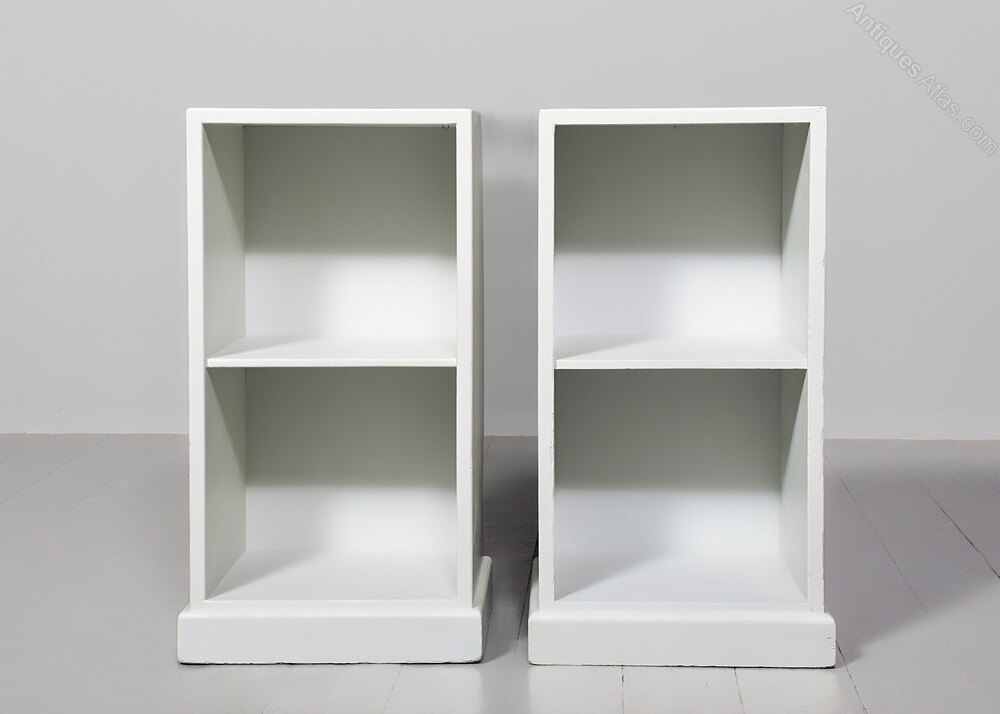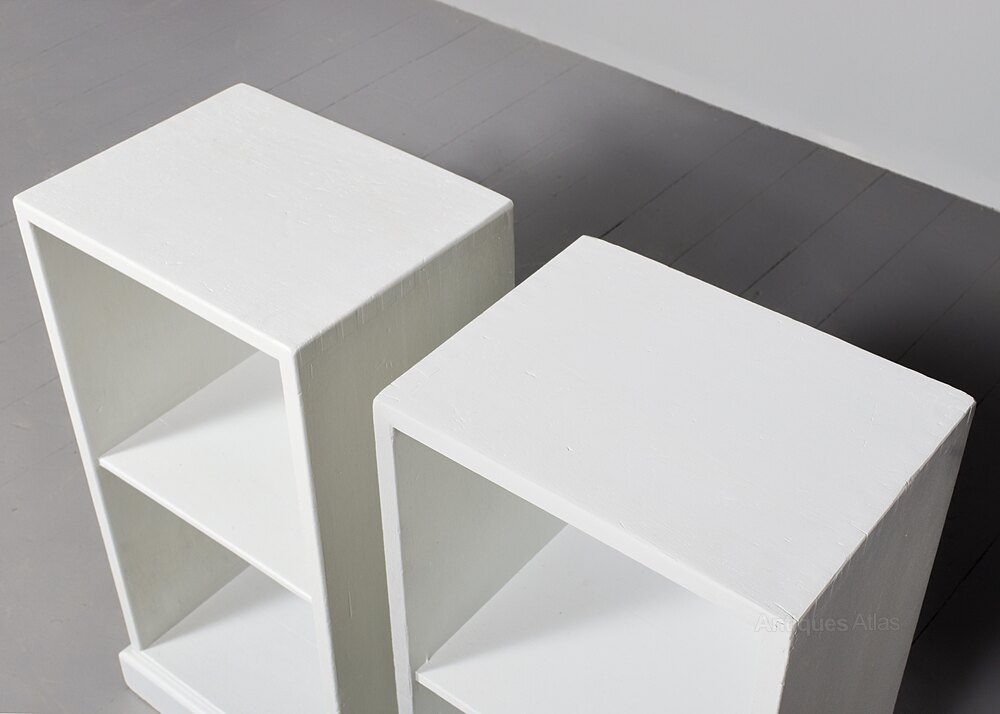 Circa 1930. Pair of solid teak Cotswold-style open bedside lockers, now hand-painted in a Swedish grey colour with quality Farrow and Ball paint. Could also be used as small bookcases or lampstands.