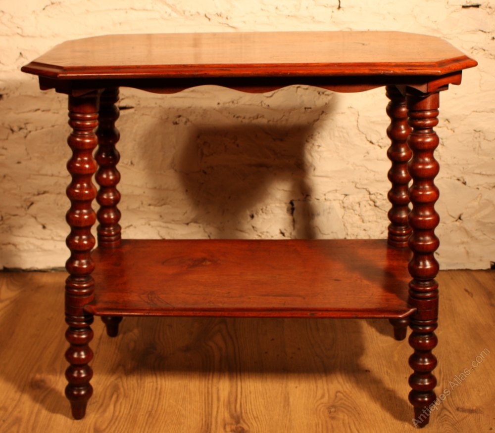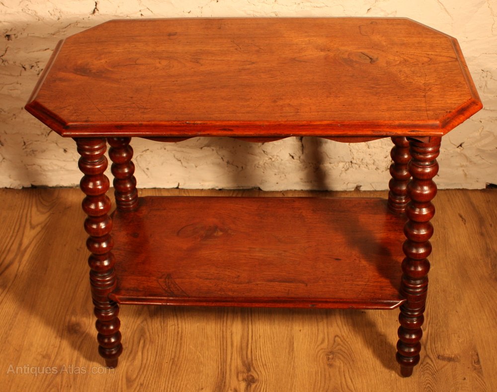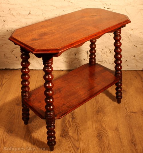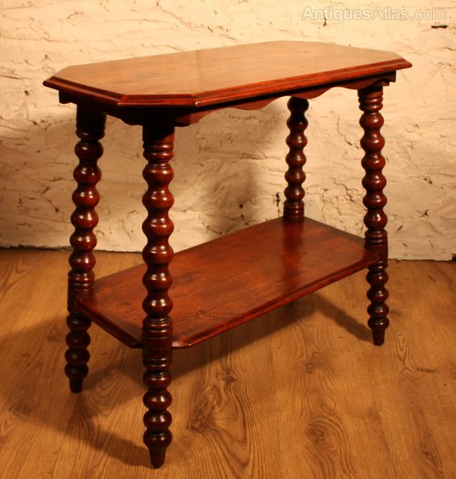 Solid walnut 2 tiered occasional table with bobbin turned legs.