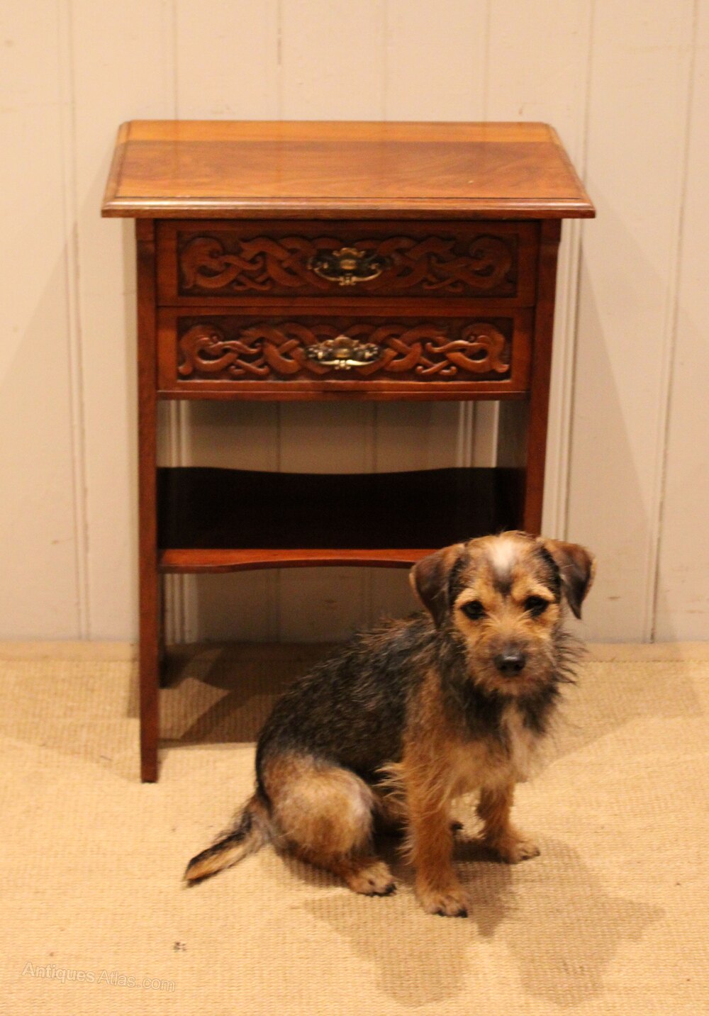 Solid Walnut Art Nouveau Two Drawer Cabinet
