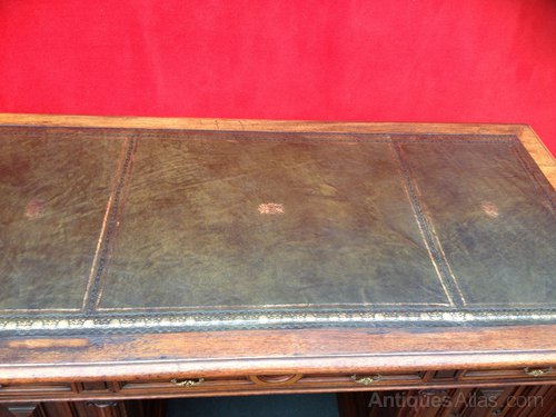 Antique Edwardian Inlaid Mahogany Leather Top Desk