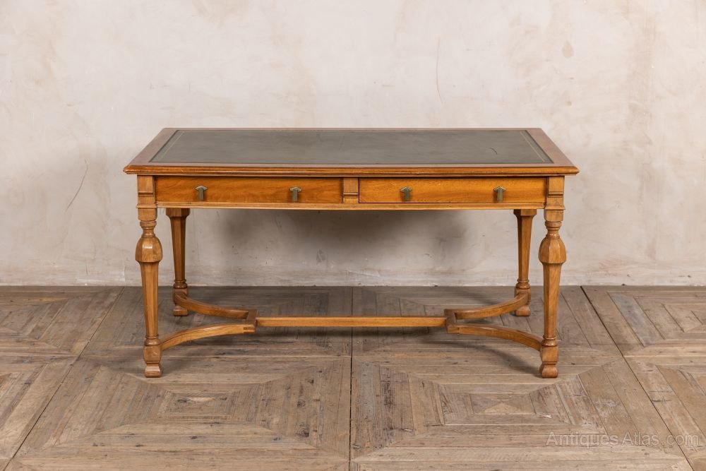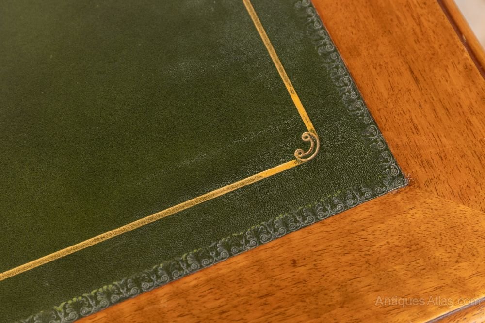 Bring elegance and vintage class to your home office with this beautiful Solid Walnut Writing Desk. Complete with a stunning green leather embossed top and crinoline stretchers, this beautifully designed office desk has all the charm and character to make a statement in your office or study. Made from solid walnut, the desk can be used for many years to come.