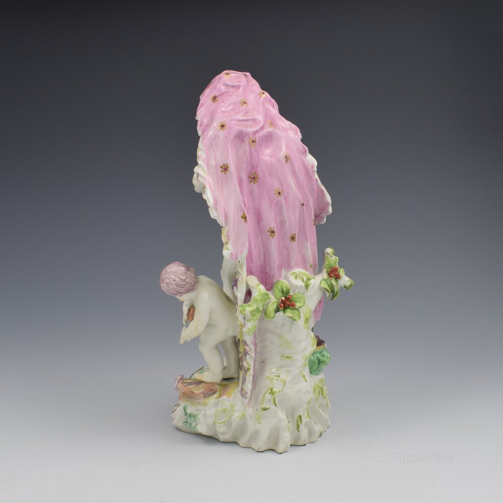 Rare Derby Porcelain Figure Cupid With Doves & Key