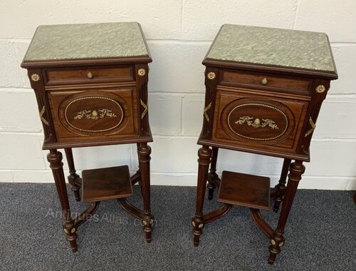 The brass embellishments are of the highest quality and the cabinets retain their original marble tops and internal marble lined cupboards.