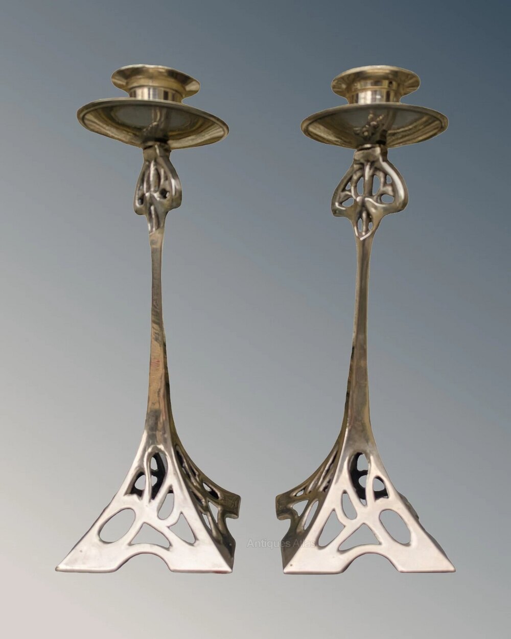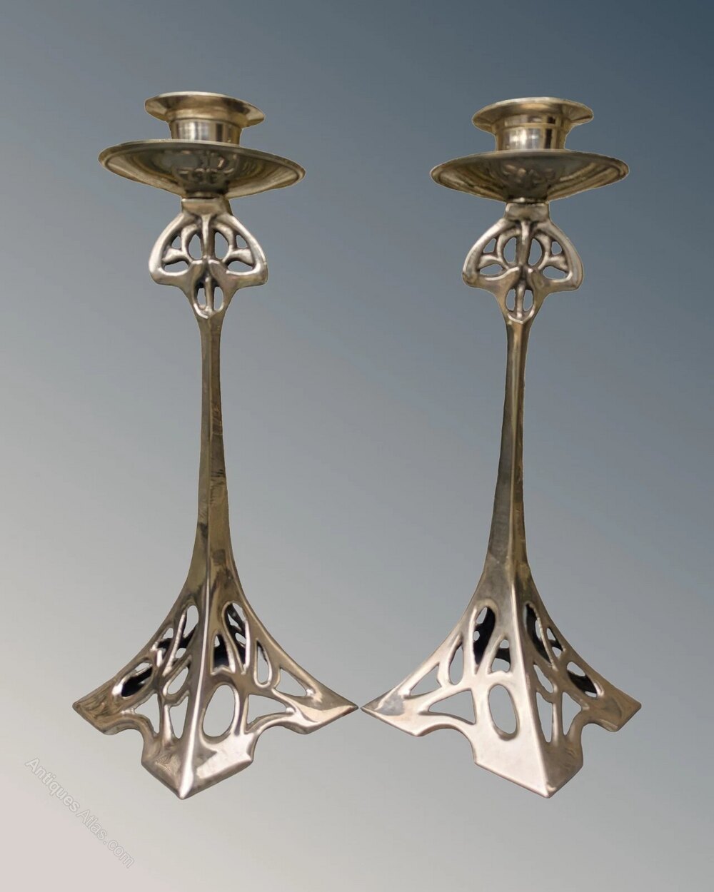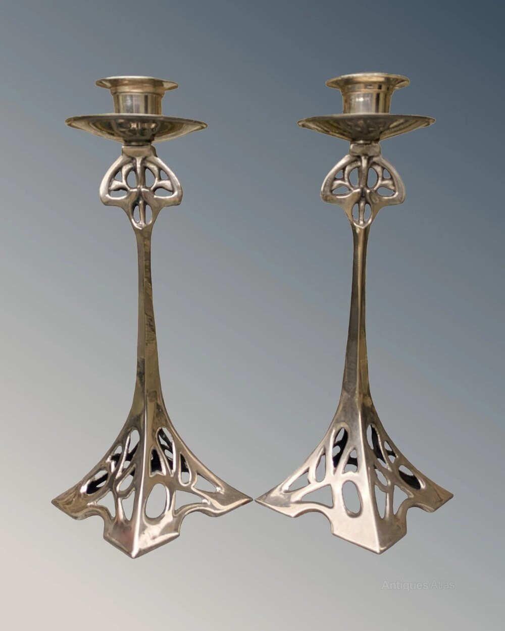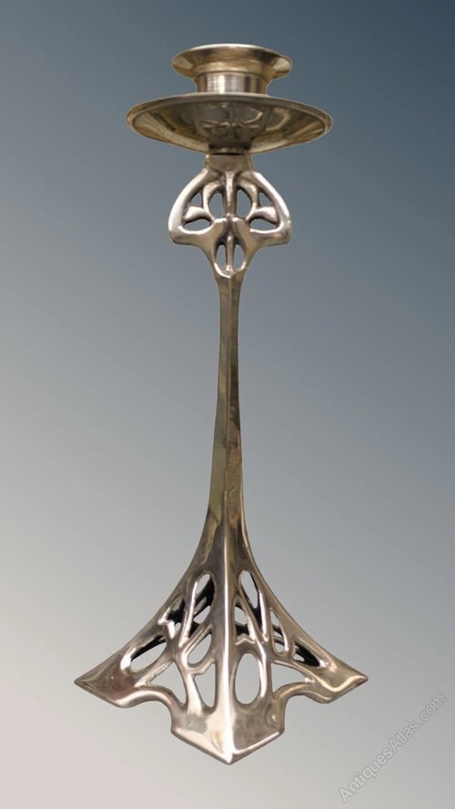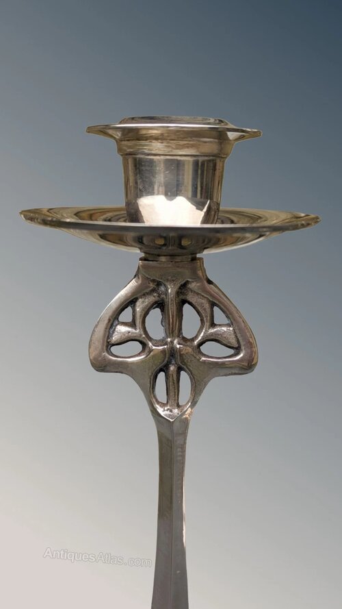Stylish Art Nouveau Silver Plated Candlesticks