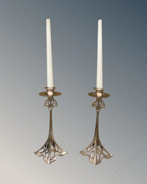 Pair Of Brass Art Nouveau Candlesticks WMF style