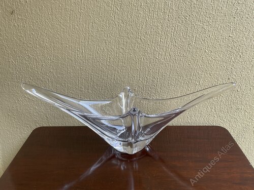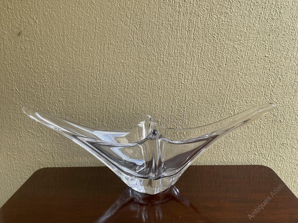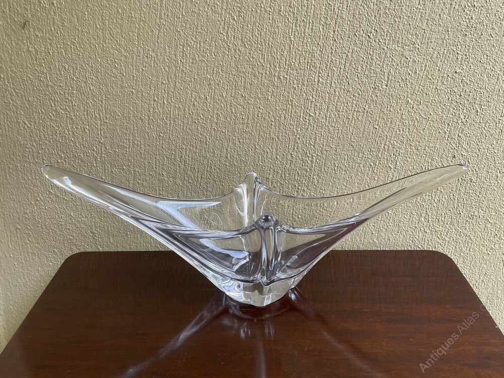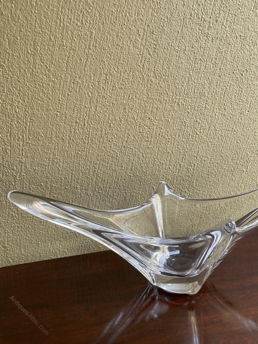 Elongated Swallowtail mid century crystal centrepiece bowl by renowned French glassmaker , Daum.
