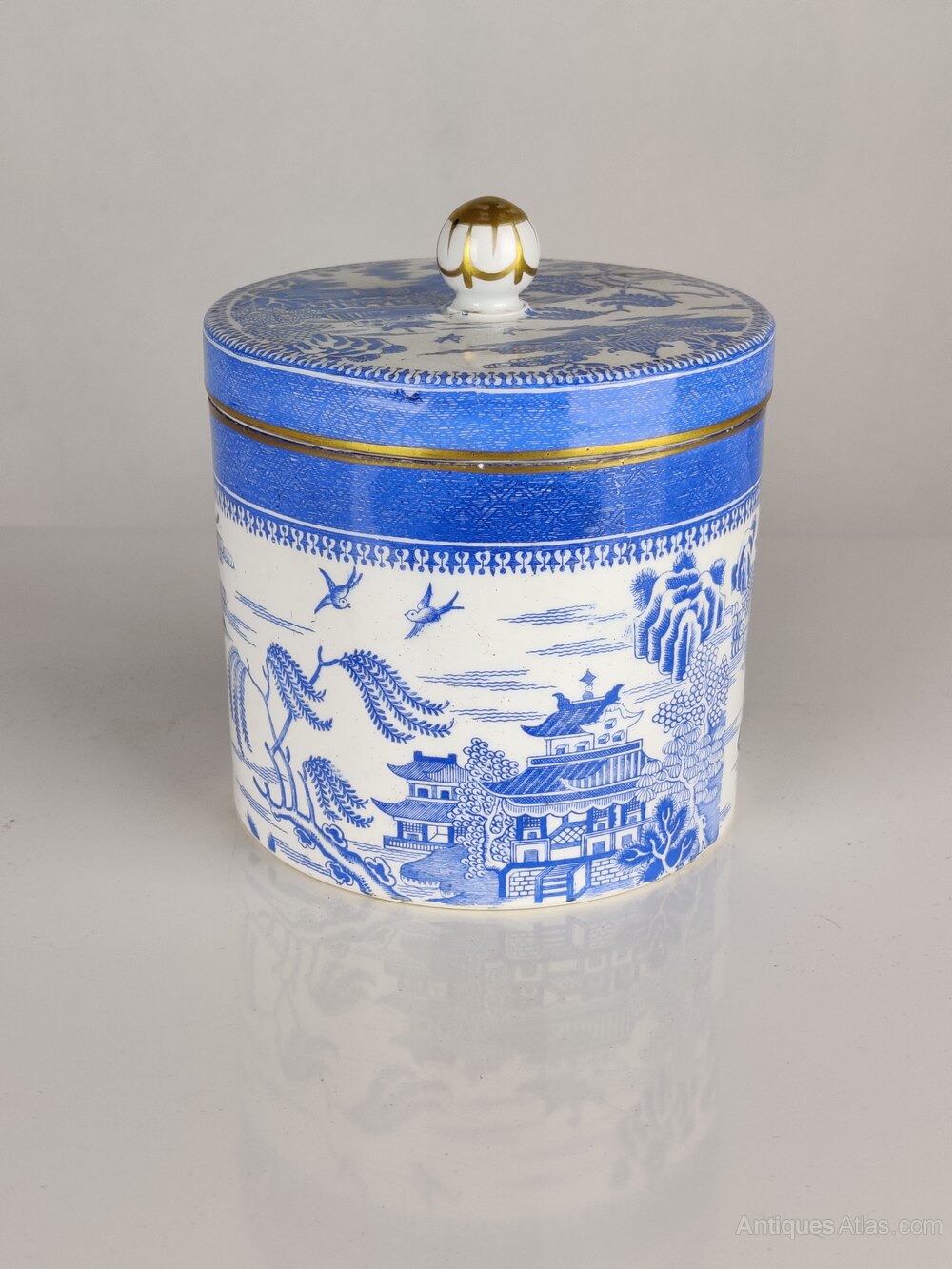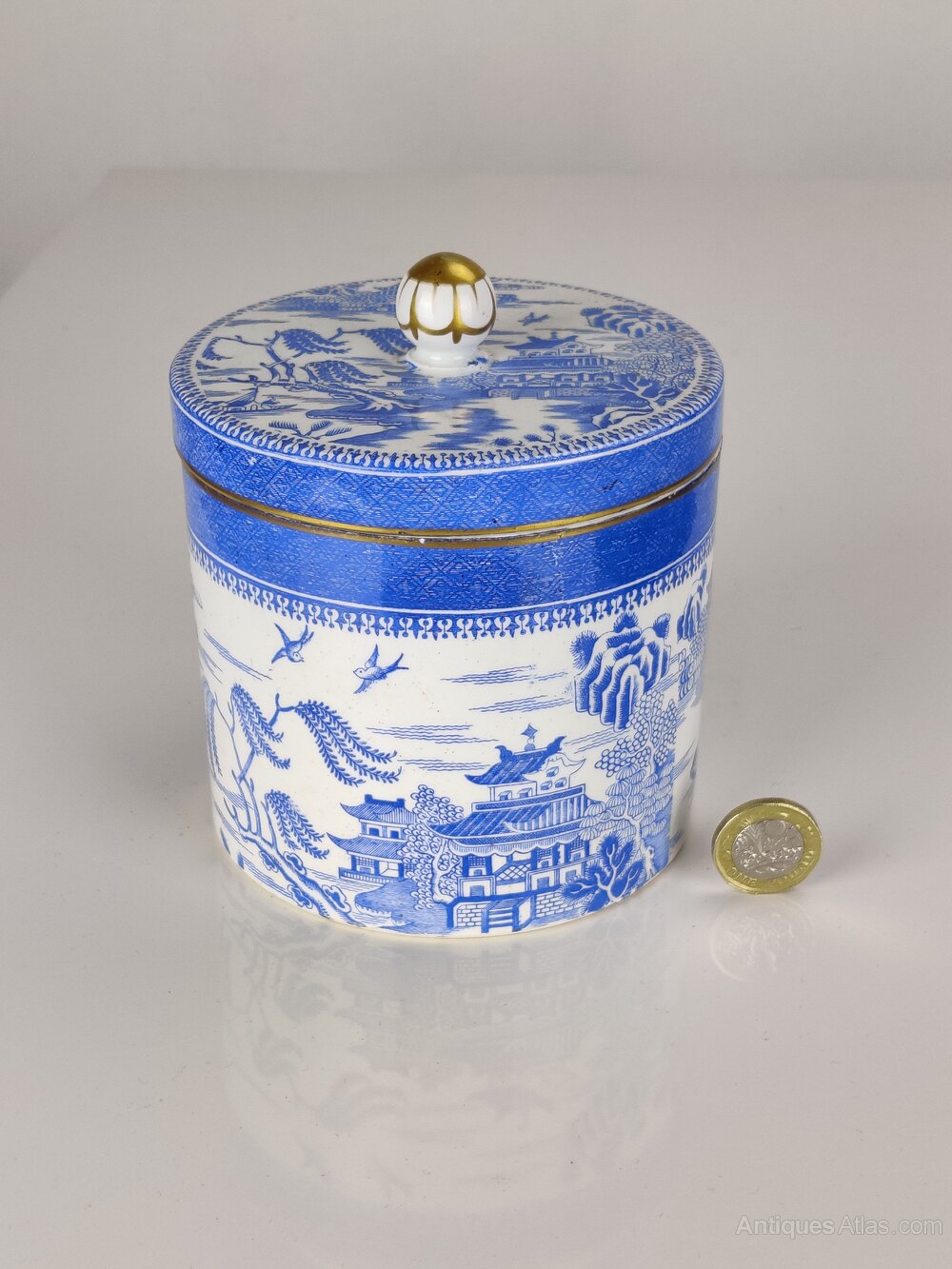 A beautiful early 19th Century willow pattern sugar box and cover. In great condition (small chip to inside rim see photo) Transferware, probably early Spode.