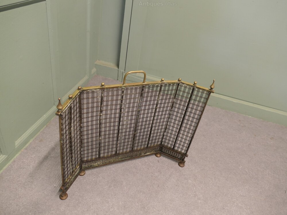 This is a Fine Quality Screen, it is designed to wrap around the fire, it has an intricate design with brass infill, a very attractive piece, and superbly executed