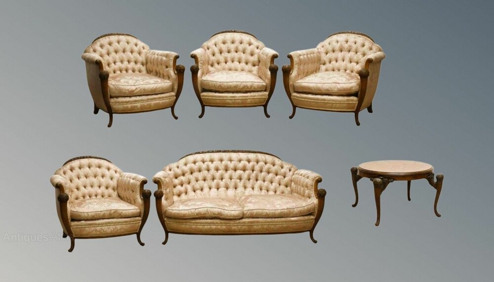 Art Deco Walnut & Leather 3-Piece Suite
