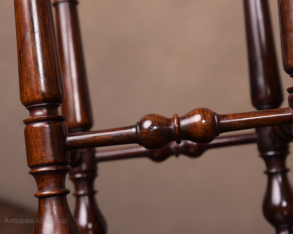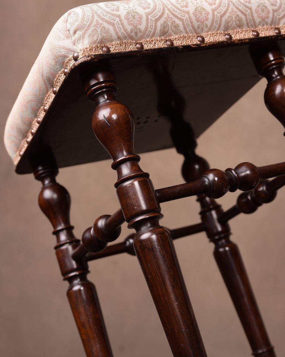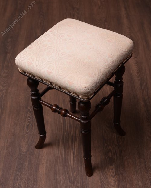 Victorian stool made from excellent quality rosewood made by Brookes limited, with four turned legs terminating on splayed feet with turned supports in showroom condition .