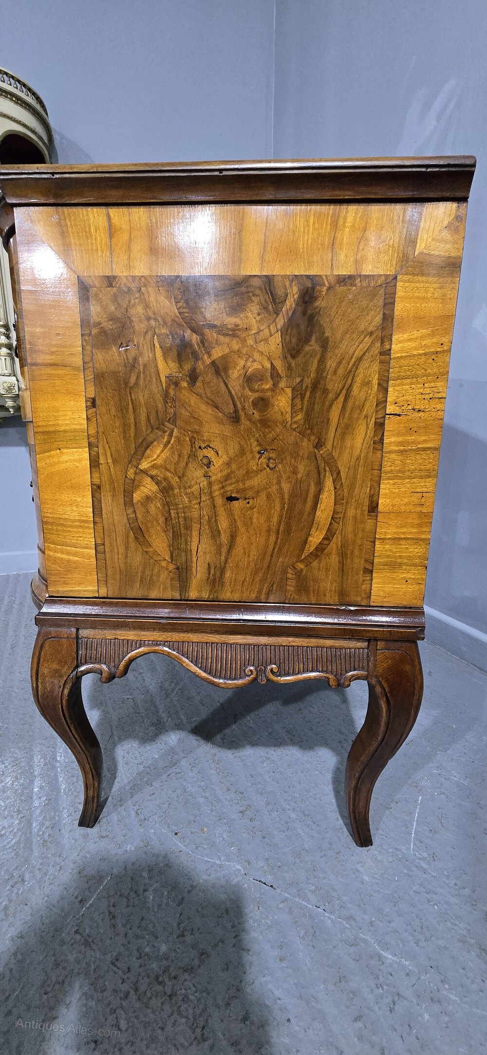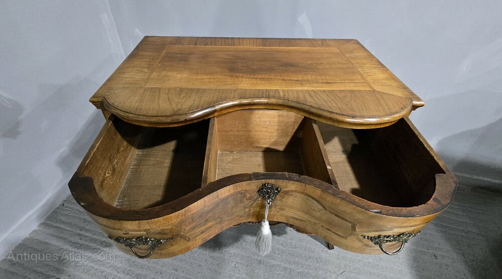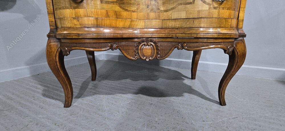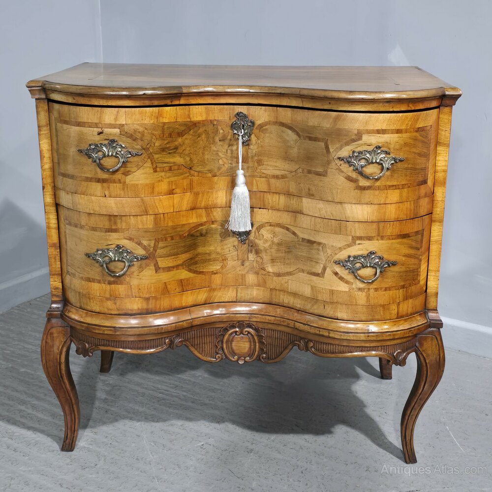 A super quality continental walnut two drawer deep serpentine chest of drawers, ioth gilt handles, cubb locks, standing on solid walnut base. in very good colour and condition.