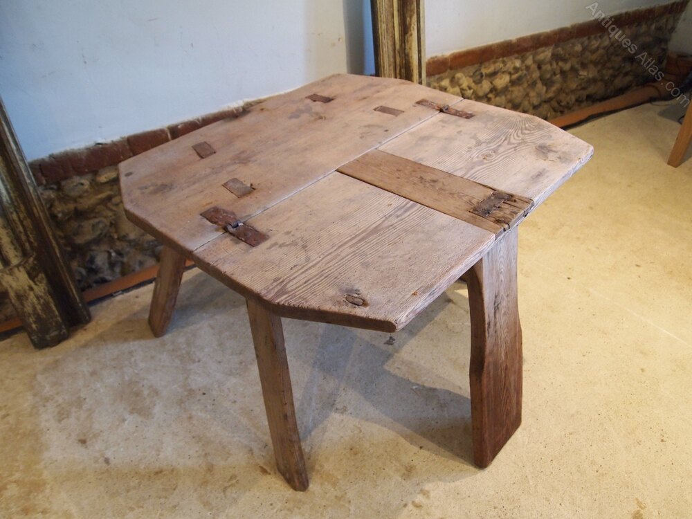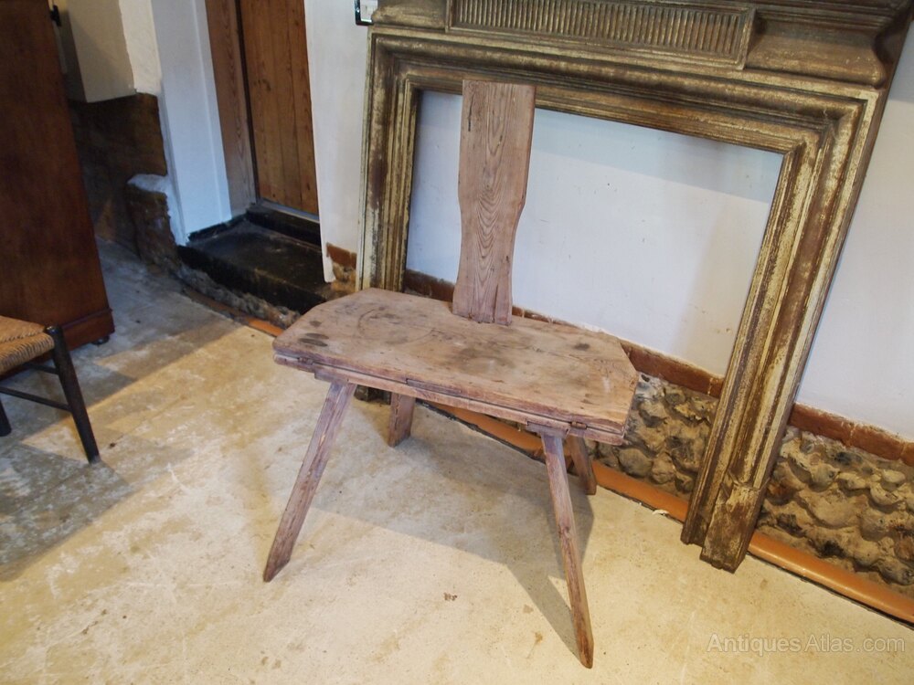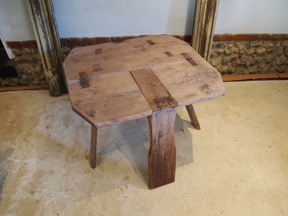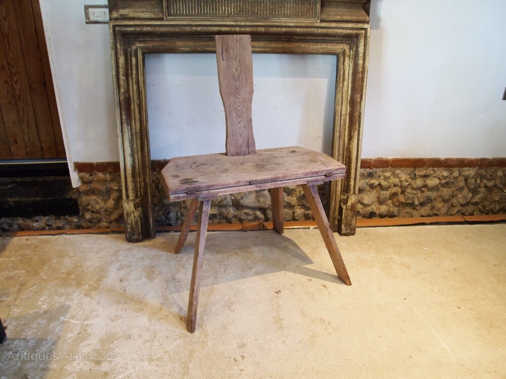 Here we have a very rare surviving primitive George III Pine table chair c1800. As you can see the chair has great washed colour and patina. There is a simple shaped seat and plank back. The plank back becomes the leg when opened out. There are lovely through joints from the legs and original hinges with hand made nails. A super period vernacular table chair in great retail condition and ready to use. The dimenions are approx 106 cm high 73 cm wide 33 cm deep.