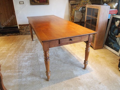 Here we have a wonderful Victorian period French Apple wood refectory dining table c1890. As you can see the table has fantastic colour and patina. There is a stunning thick plank top with super grain. There is a single end drawer and at the opposite end a fantastic slide which when extended will allow 10 people to be seated. There is a shallow frieze and beautifully turned legs. The table is heavy and solid throughout and in great retail condition ready for your home. The dimensions are approx 200 cm long (285 cm extended) 84 cm deep 76 cm high.