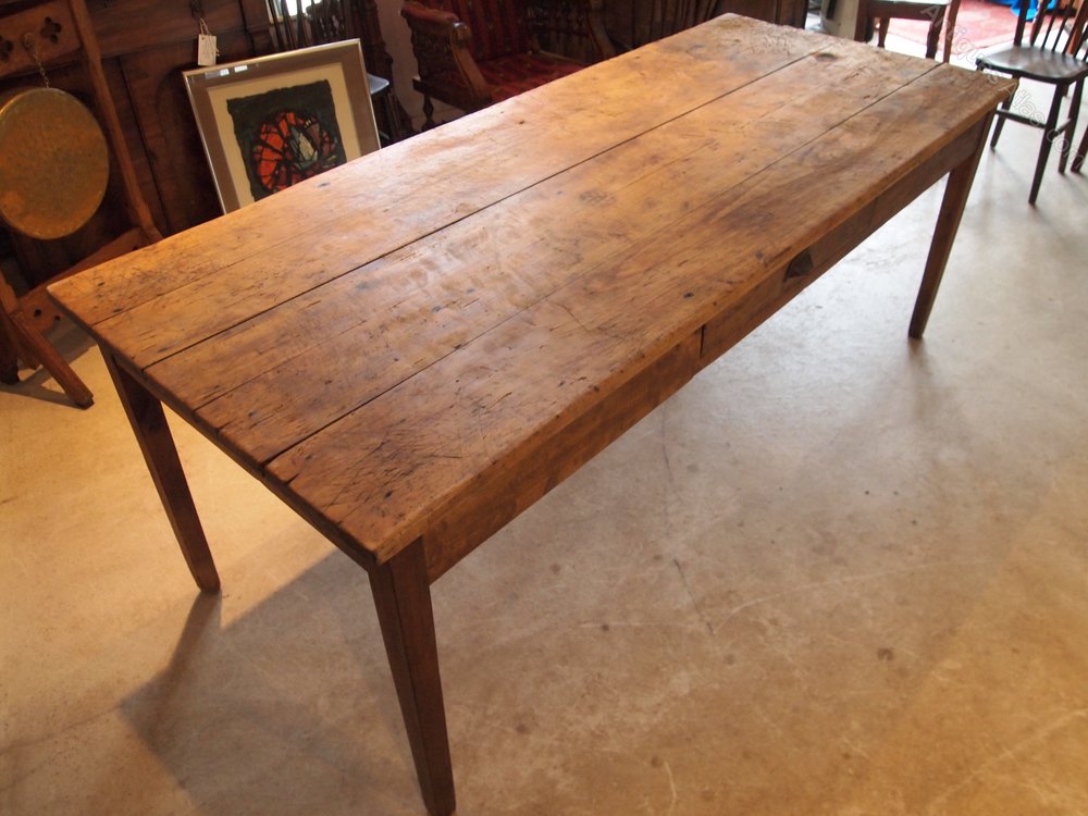Here we have a wonderful Victorian refectory farmhouse table c1860. As you can see the table has great colour and patina. There is a five plank top made from thick London Plane. The top has great colour and patina and the wonderful hallmarks of history. The base has great colour and a single drawer to the side. A super period table in great retail condition ready for your home. As you can see the table will comfortably seat 8 people. The dimensions are approx 79 inches wide 33 deep and 29.5 high.
