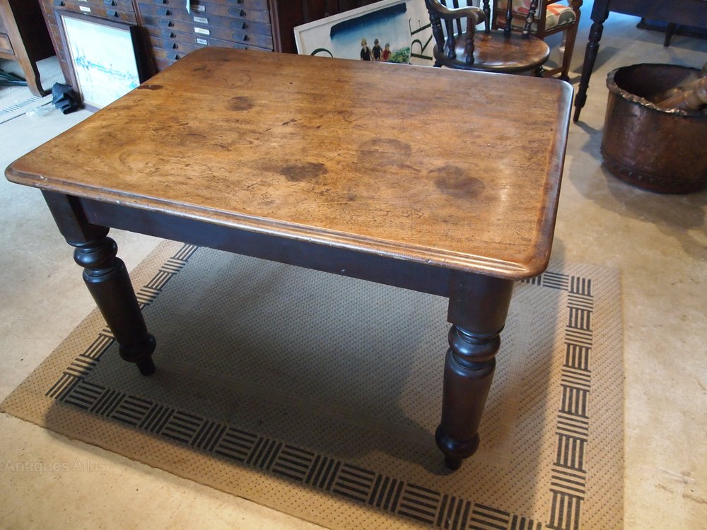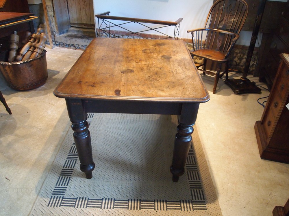 Here we have a fantastic Victorian Walnut kitchen dining table c1880. This wonderful small cottage table has super colour and patina. There is a planked top with super grain, colour and a thumb moulded edge. There is a shallow frieze and beautifully turned legs. The table will seat four comfortably. A super period table in excellent retail condition ready for your home. The dimensions are approx 45 inches wide 34 deep and 29 high.