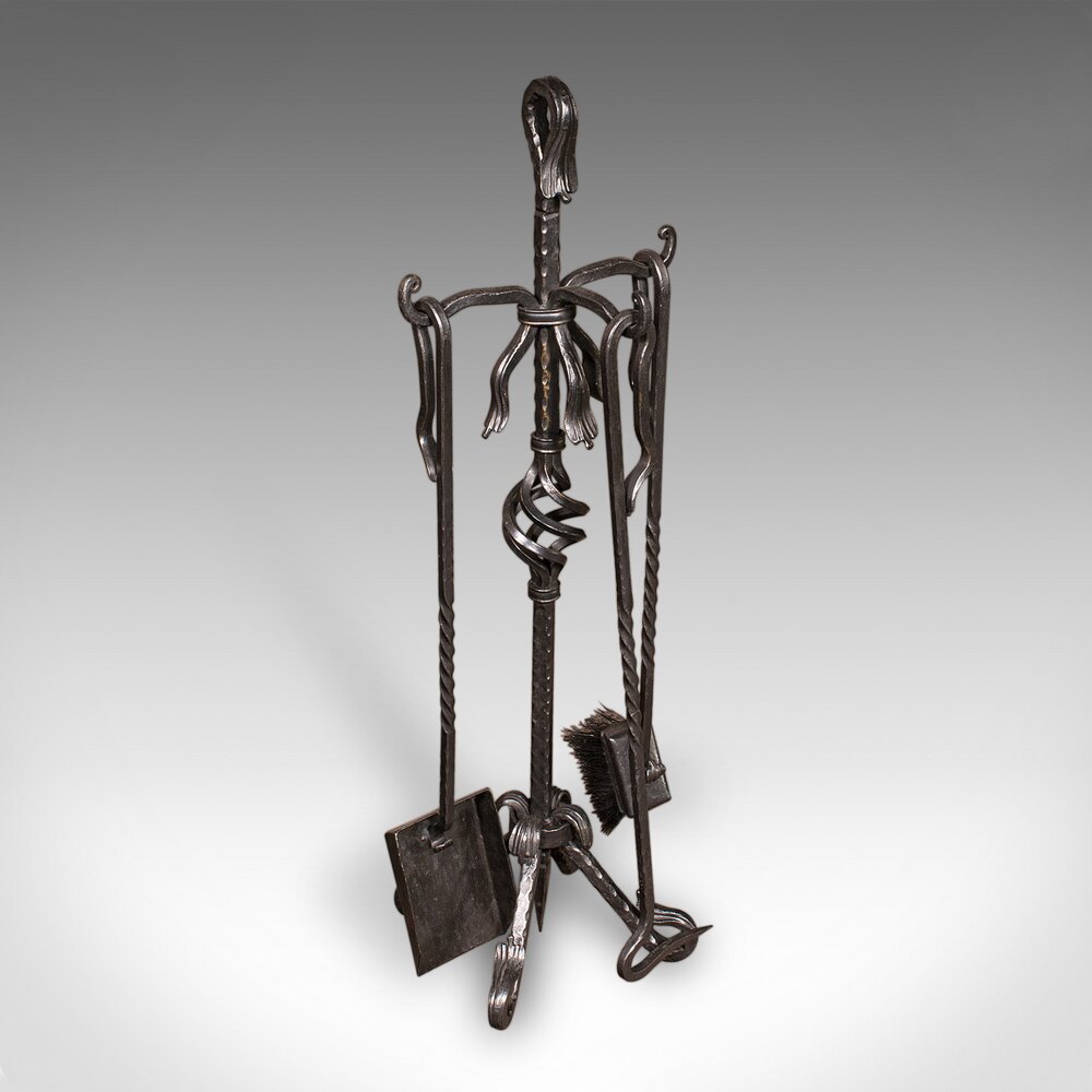 This antique wrought iron fireside companion set combines refined detail with daily practicality, making for a distinguished presence by the hearth. A superb addition to any traditional fireplace ensemble. Delivered ready for the home.