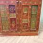Tall Indian Folk Art Painted 5ft Shelved Cupboard