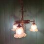 Pretty Antique Brass Chandelier Pink Crimped Glass