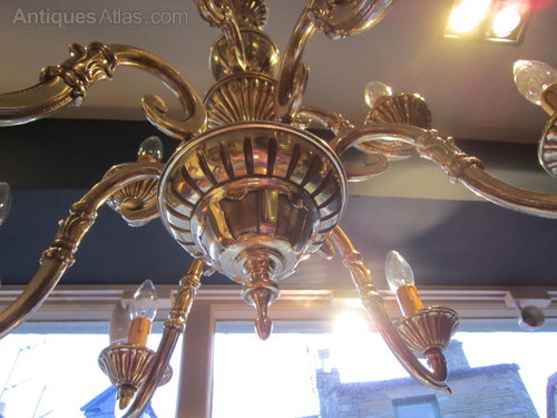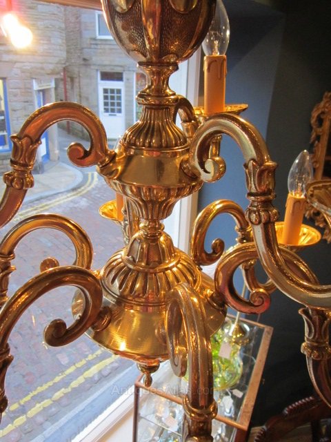 French Gilded Brass 8 Light Antique Chandelier