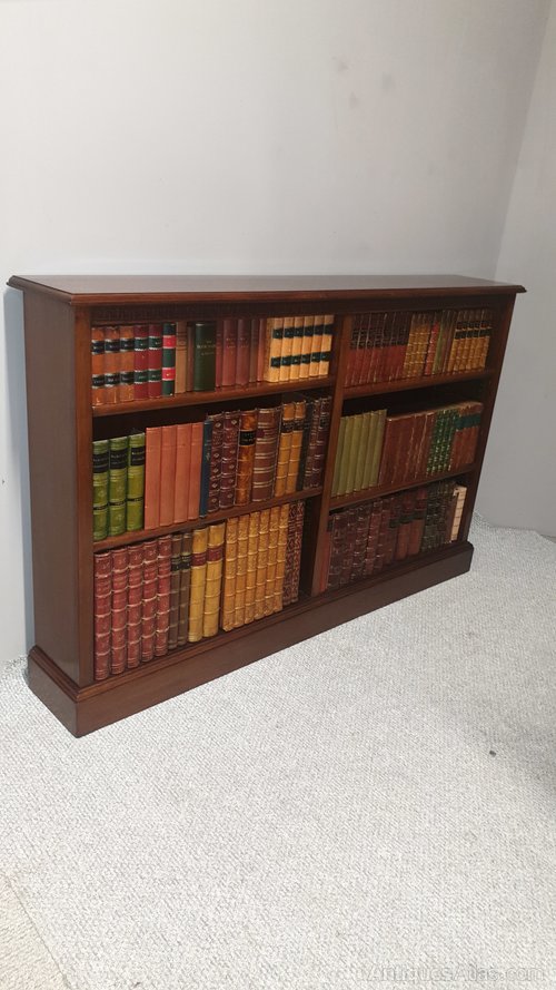 Top quality adjustable open library bookcase, four independent shelves, solid mahogany in excellent condition.