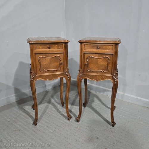 Top Quality Pair French Walnut Bedside Lamp Tables